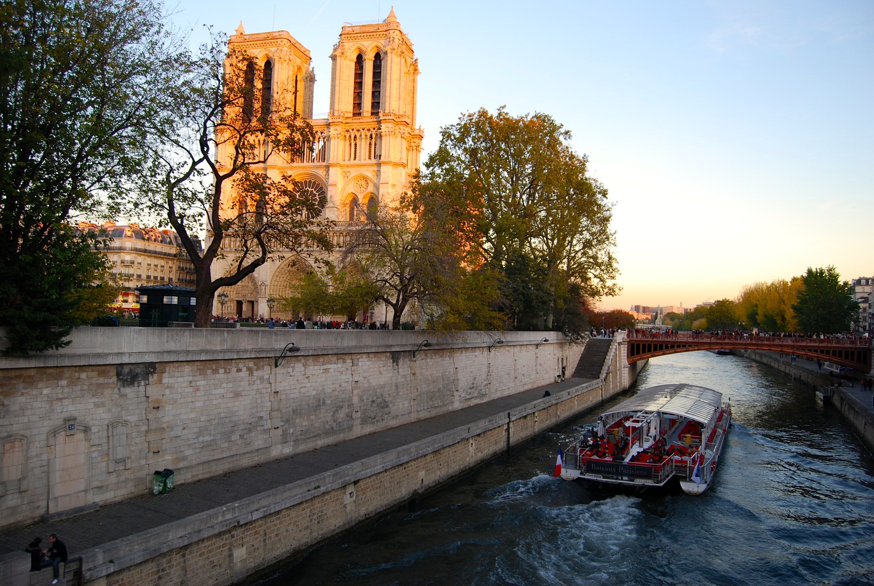 As our next stop for the day, Notre Dame, was some distance away we took a bus down to the Seine.  Regardless of the time of year day, this famous cathedral is crowded.  Joanna and I had planned to climb up to the top to try and recreate the picture we took there in 1982, with the Eiffel Tower in the background, so that we could chronicle our 25 years together.  Unfortunately our timing was off and we missed the cutoff for the last tour.