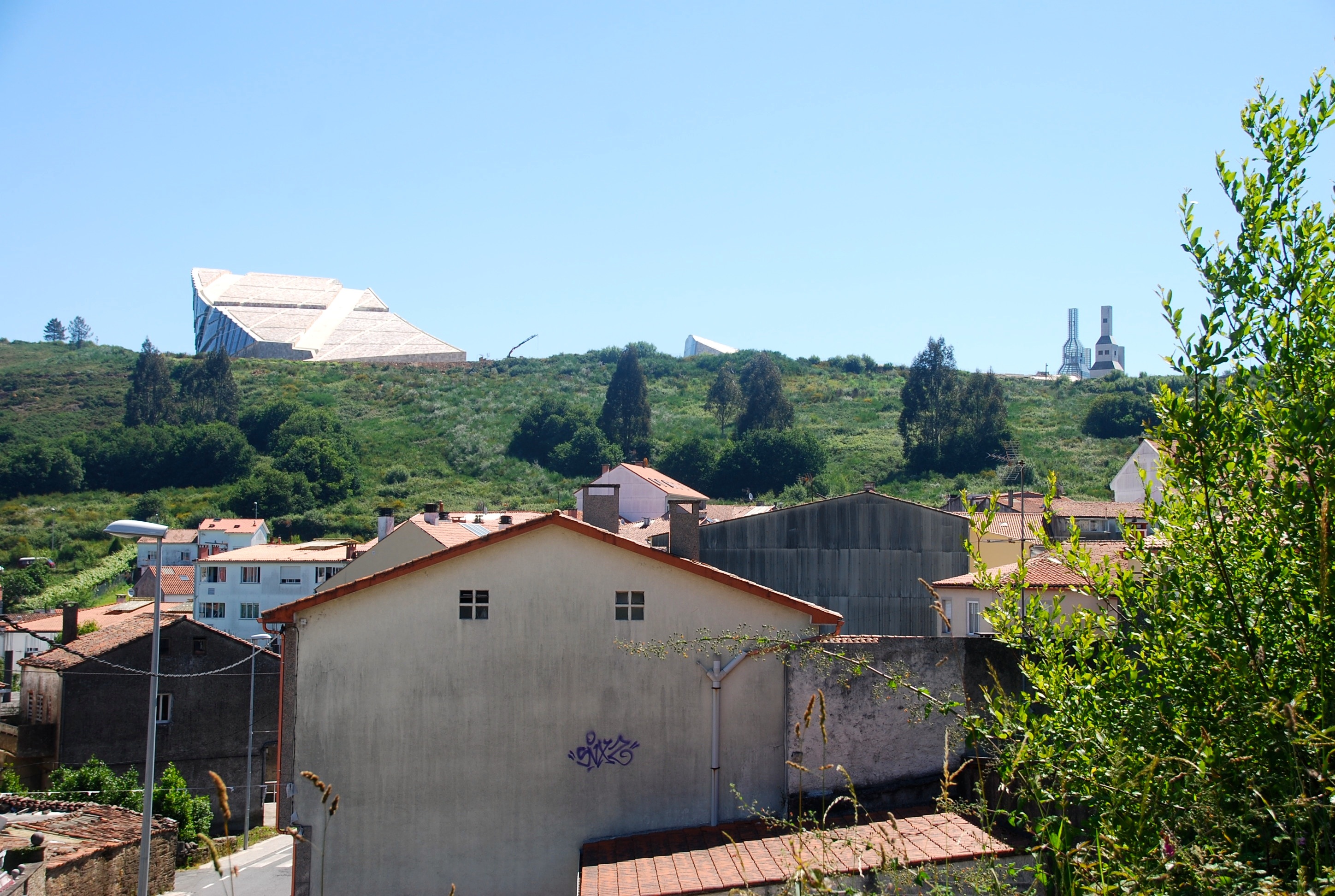 We broke camp at Cancelas and with a somewhat short drive to Porto, decided to try to find out what those interesting buildings were on the top of the hill that we’d aimed for on our bike ride a day or so earlier. Joanna had picked up some information at the campsite for this complex, the City of Culture of Galicia (the region of Spain we were in) and so we plugged the coordinates into the GPS and made our way there.