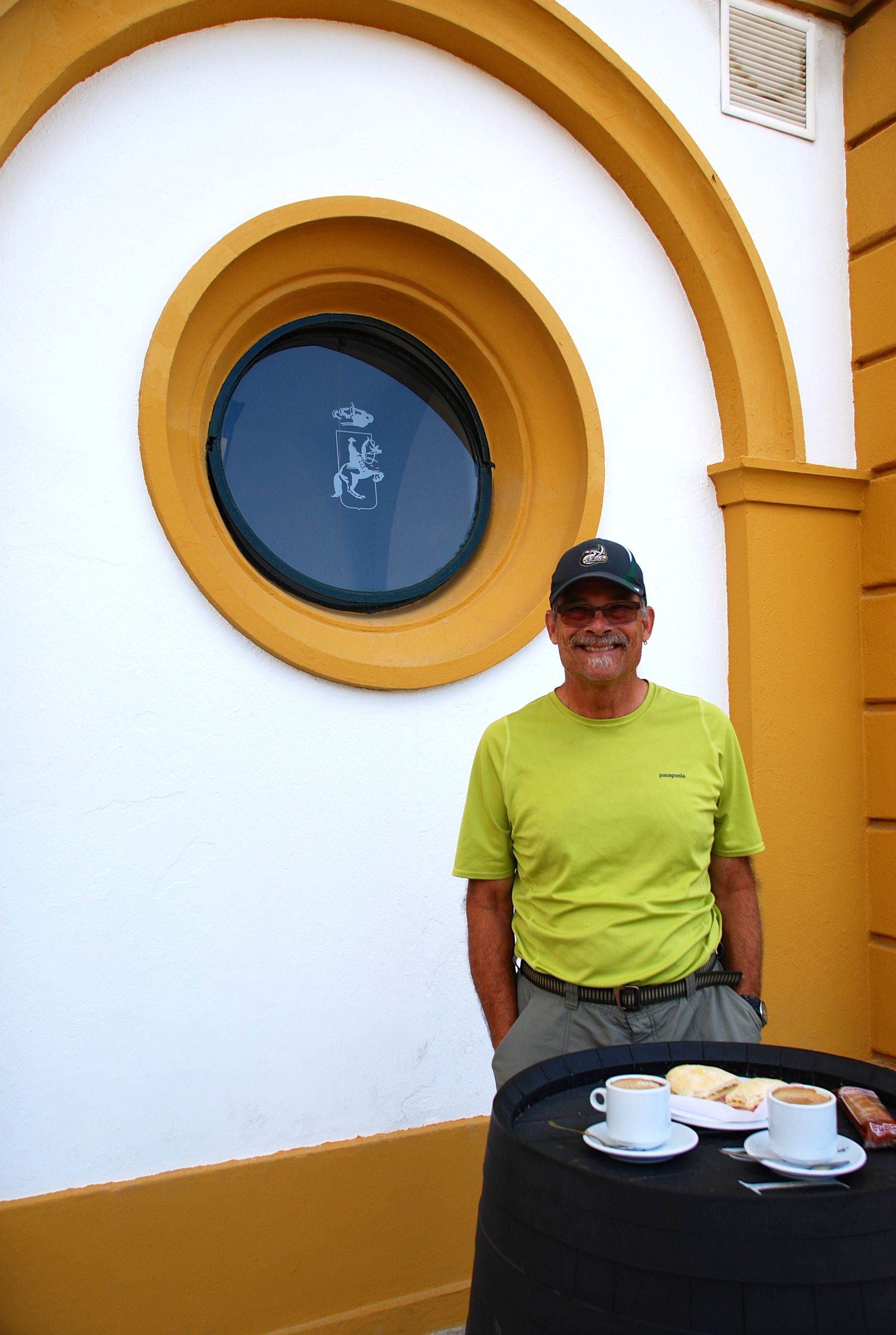 We’d been very fortunate with the weather since the windy day in Porto, with no real rain since our stay in the Dordonge in late May, almost a month of dry weather. This was one of those postcard days, warm but not too hot, dry with little humidity, a perfect morning for watching a bunch of horses put through their paces in a training ring. As luck would have it, the snack bar at the performance arena served food and so we enjoyed two café con leche’s and a very good jamon con queso on ciabatta, heated through.