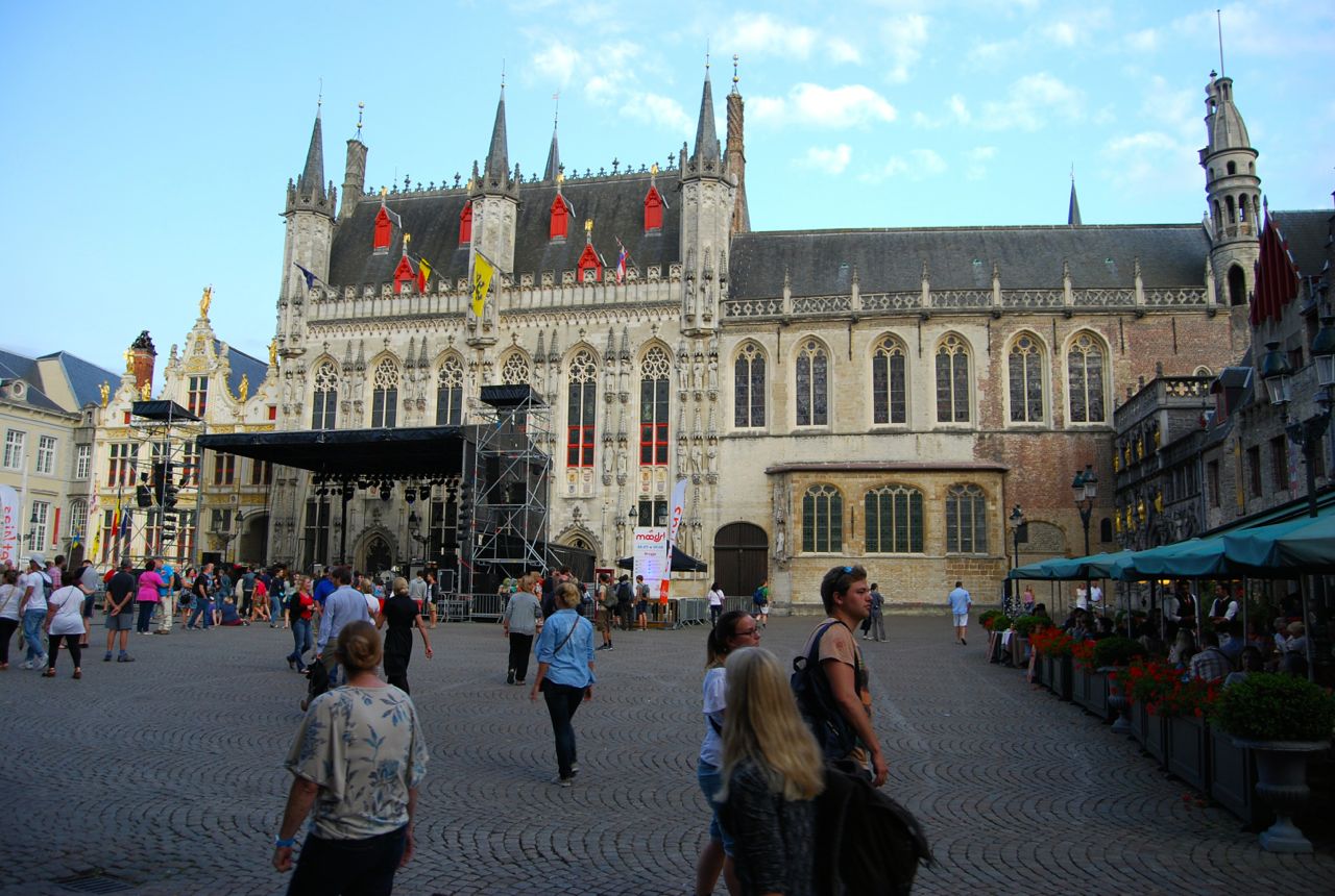 Too stuffed to eat any desert we walked towards the center of town as the Fevery folks had advised us there would be free concert that night in Burg Square, which is adjacent to the Markt Square. Known as the historic heart of Brugge, a summer long concert series is held there and we were fortunate to stumble upon one of the nights. There is something about seeing any kind of musical event in this type of surrounding, all of the modern trappings needed to produce it surrounded by centuries old buildings.
