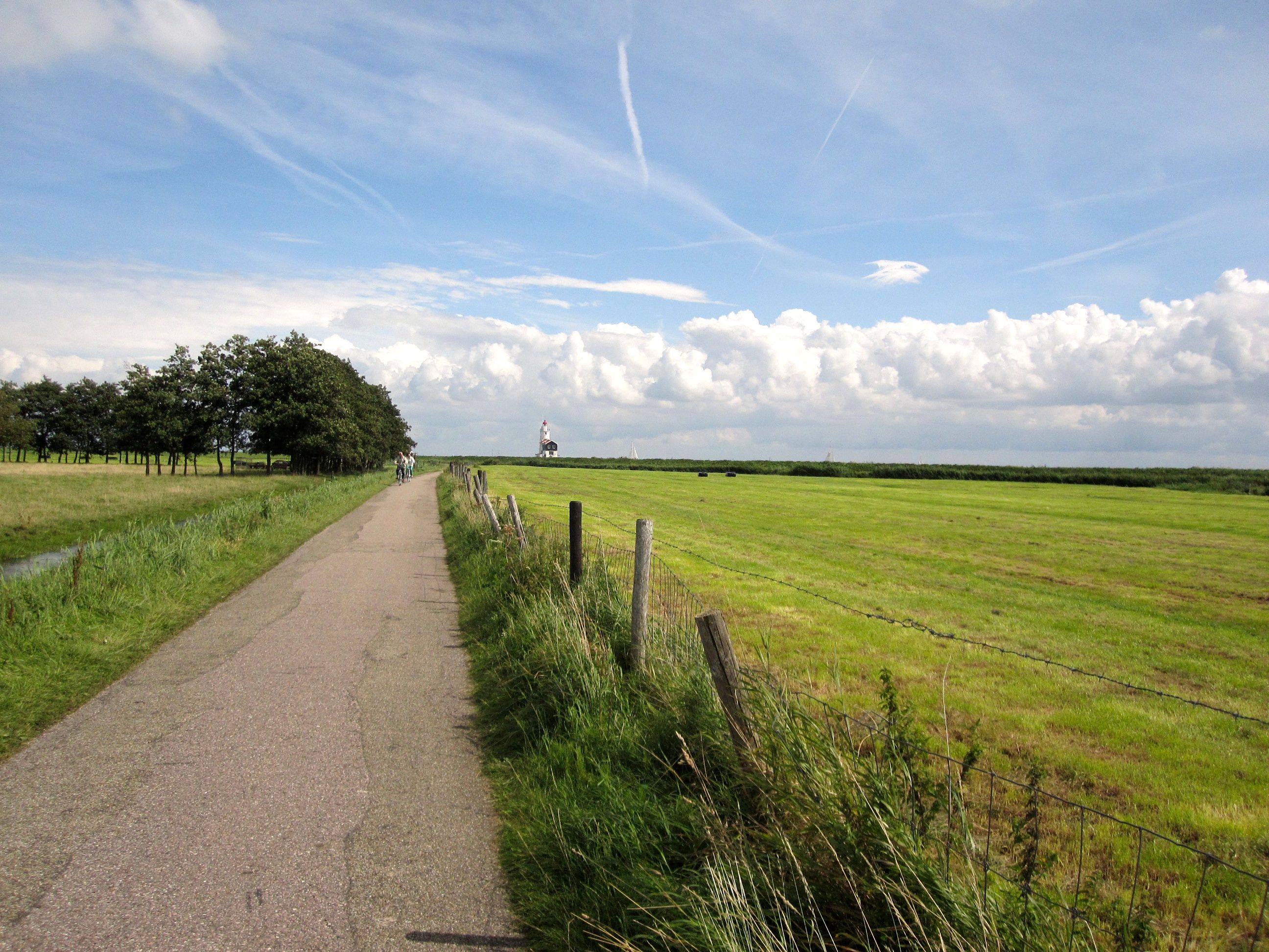 A lovely day to be out on the water, we had just enough time to enjoy, you guessed it, two cups of coffee and an apple strudel. Disembarking in Marken, we rode back through town, exited at the parking lot and instead of turning right to cross the causeway turned left to head out to the lighthouse.