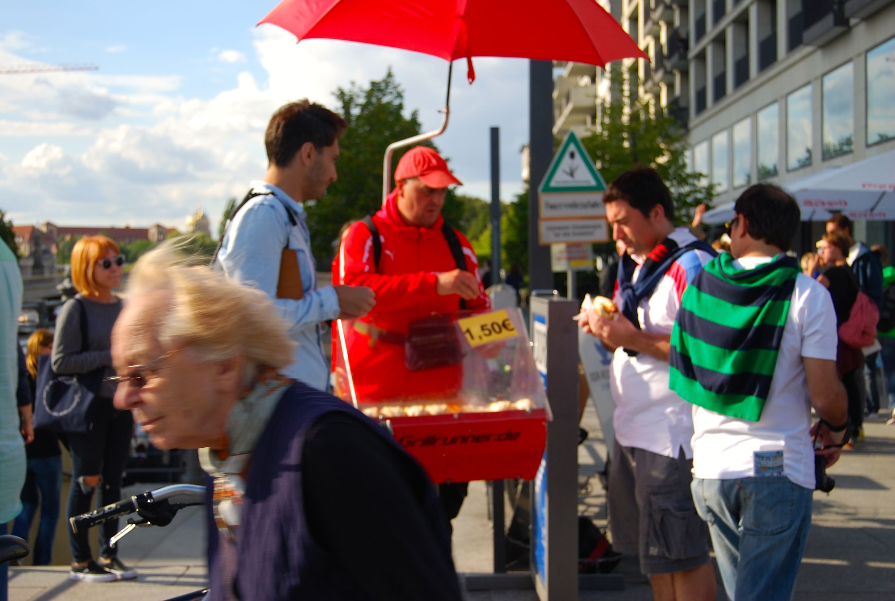 Stopping next at the Berlin Cathedral (Berliner Dom), we just viewed it from the outside. Built in the late 1800’s, the guidebook recommended skipping the expensive ticket to see a not so impressive interior. Moving eastward we passed the DDR Museum (which we would visit later in our stay) that is located on the banks of the Spree River, stopping for a quick ice cream and to take a picture of one of the many wurst vendors (Grillwalker) who have a unique contraption that they carry with them in order to cook and pedal their sausages.
