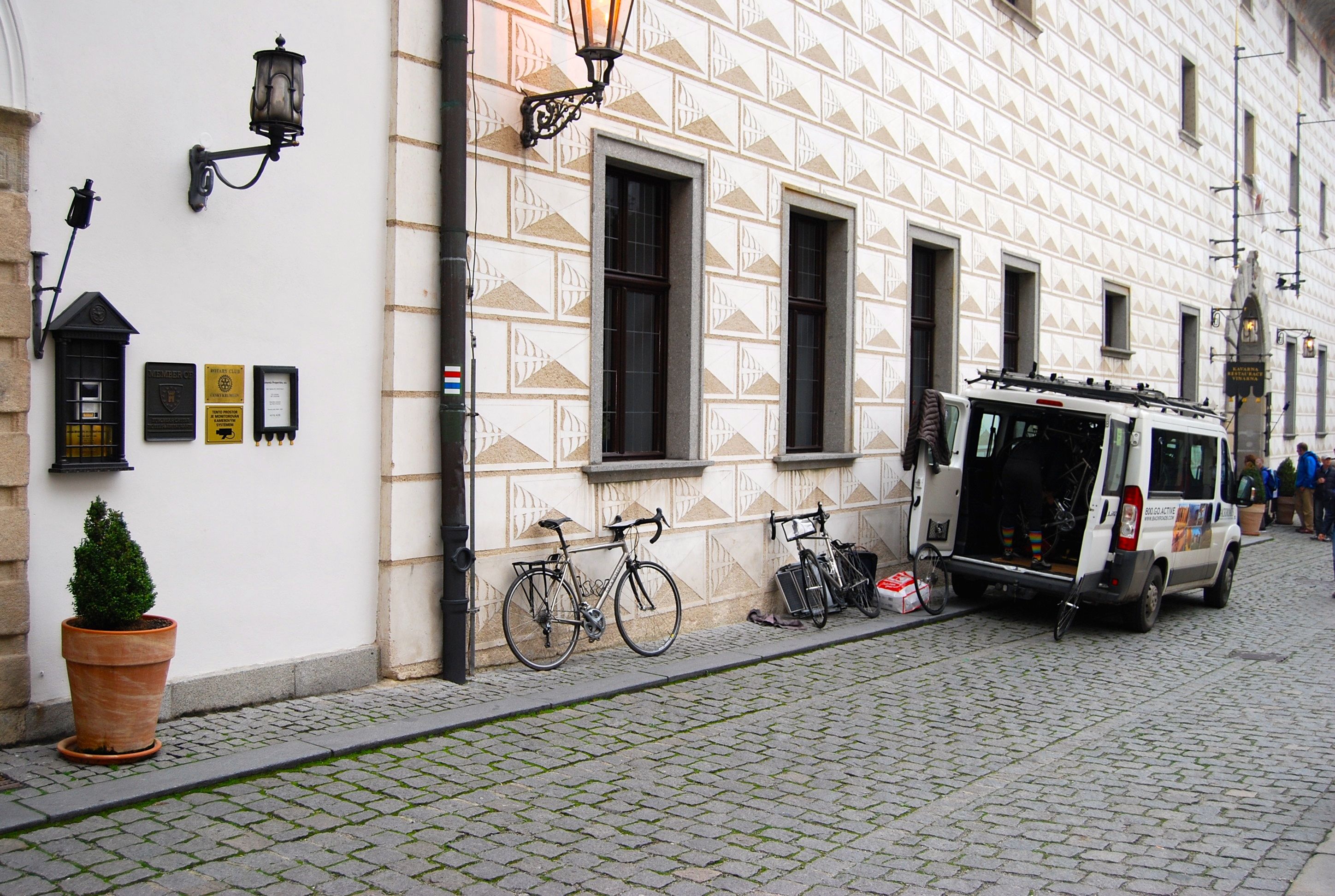 We started our walking tour at the Horni Bridge, once the fortified entry gate to the city. Just down Horni Street is the Museum of Regional History. Just before we entered it we noticed a Backroads Bicycle Tour van being loaded with nice looking titanium touring bikes. We stopped for a moment or two to chat with the young American woman loading the van, discussed the bikes themselves and some of the places we could ride around town. The tour she was supporting was Backroad’s Prague to Vienna tour, a nice but expensive one to take on a bike.
