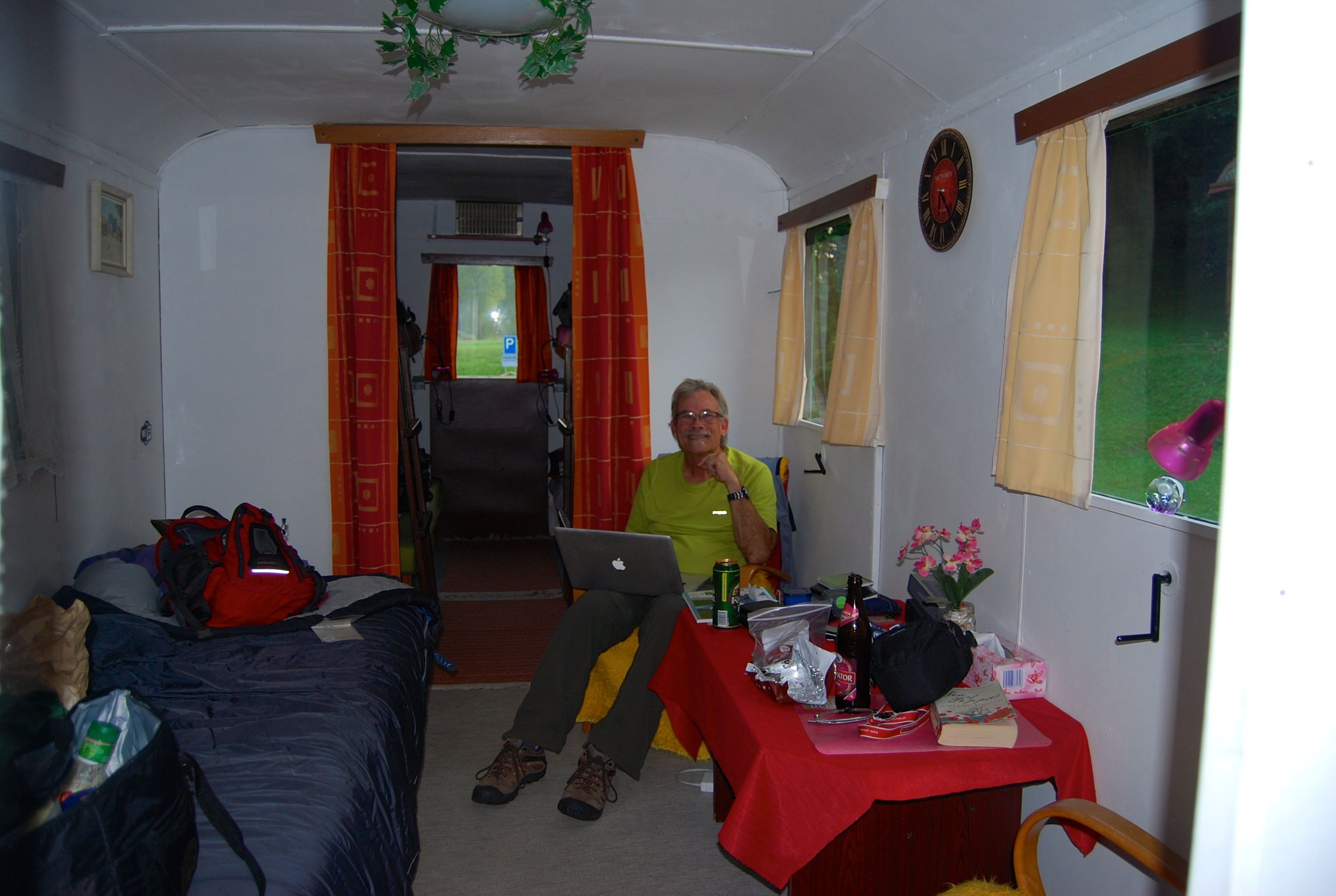 It is hard to know what role the trailer performed in its former life. Resembling a railroad boxcar, it sat on a truck frame. But it had electricity, a small refrigerator, and a space heater. We were set. We’d noticed a large supermarket, Kaufland, on our drives in and out of town so we drove back there to pick up groceries for dinner. Next to the trailer was a large indoor room for seating, eating and cooking. There were two large refrigerators, a hot plate, some cooking utensils and dishes, a nice arrangement.