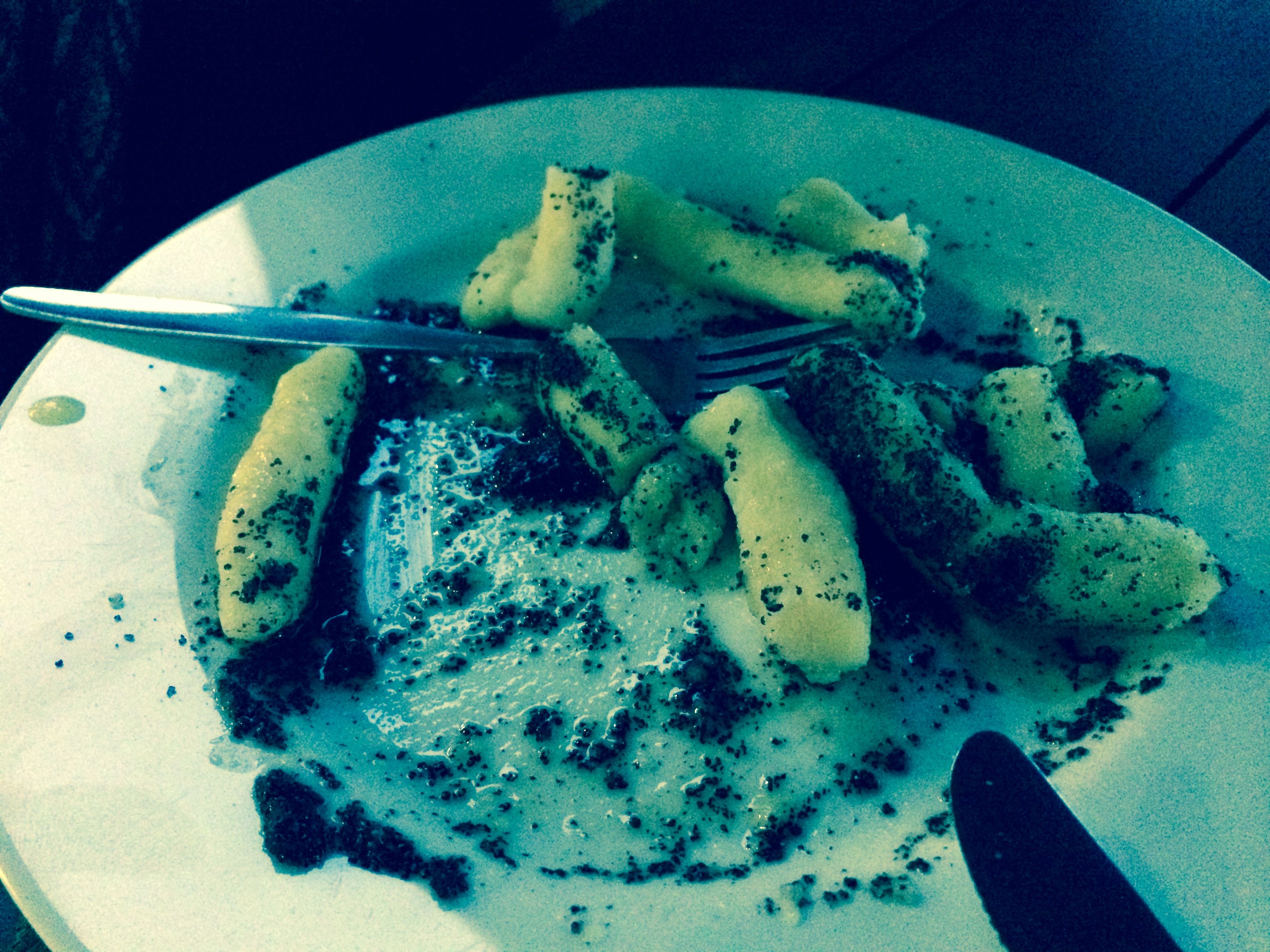 It was a lot of food, but we persevered, determine to finish so that we could order dessert, a treat Joanna had been missing for a number of meals as they had been so filling. We settled on the Bohemian Dumplings with Sesame Seeds, expecting a sweet and tasty treat.
