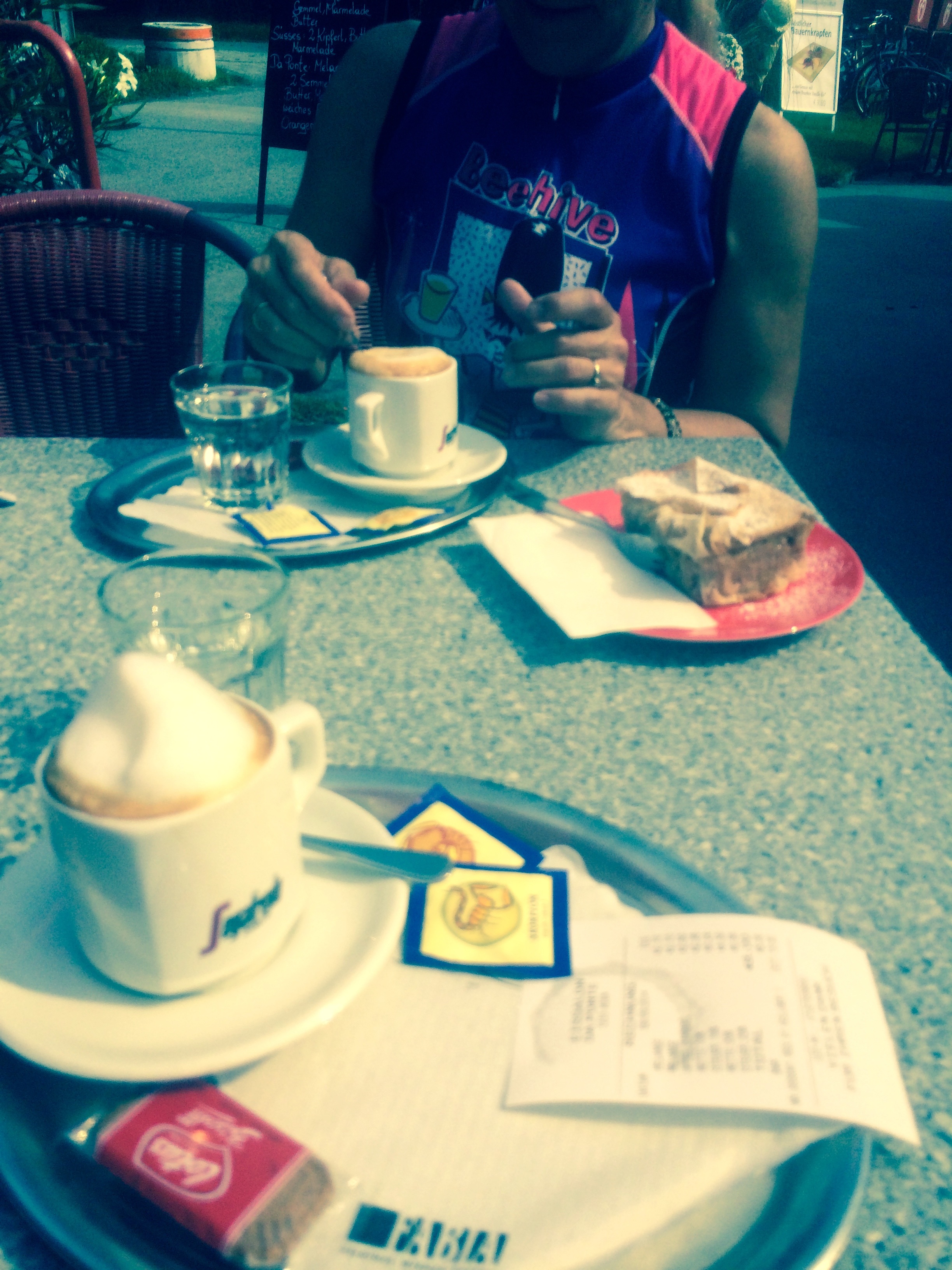 When we hit the end we turned around and started back down the island, stopping about halfway to take a break at a café to enjoy, yes you are way ahead of me here, two coffees and a strudel.
