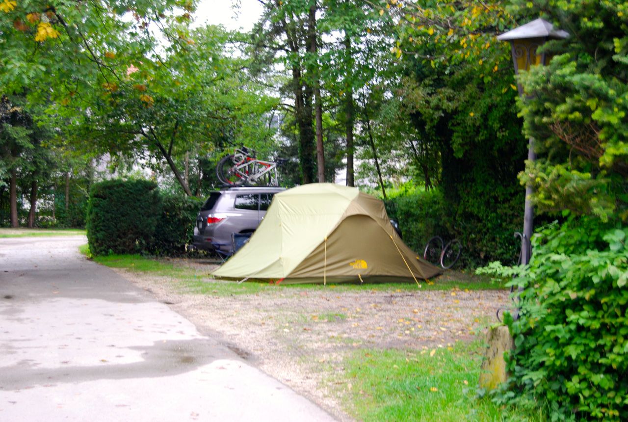 On the way to Salzburg we stopped at a gas station and purchased a toll sticker. It was only 8.50 Euros and good for ten days, it is an inexpensive and convenient way to deal with tolls. We arrived at Camping Nord Sam and set up the tent under threatening skies. The weather forecast for the next few days was dismal, sprinkles, showers, rain, and then some more rain. A great climate to be camping in.