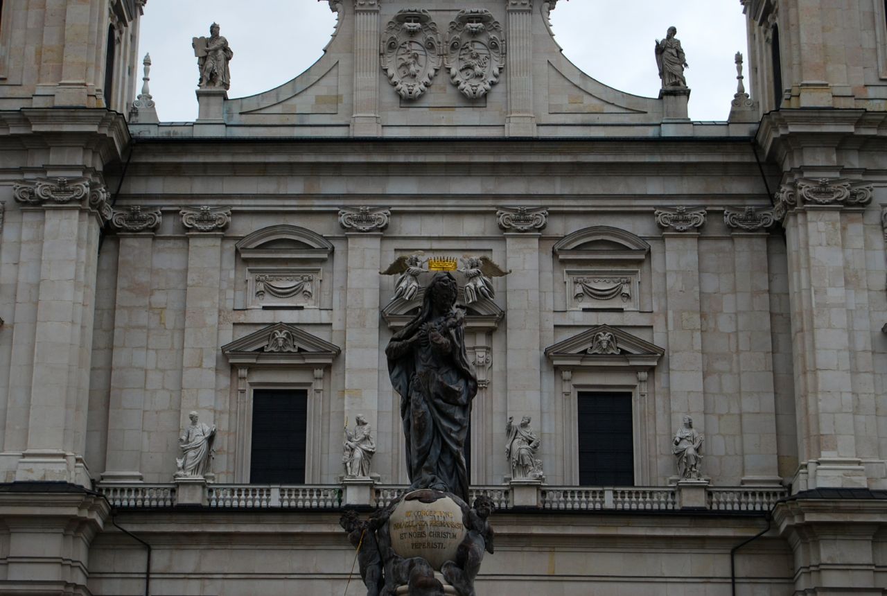 The Cathedral is one of the first Baroque buildings north of the Alps and was formally opened in 1628 during the Thirty Years War. With its rich salt production Salzburg had enough money to stay out of the conflict and carefully maintain its independence from the warring sides, earning it the nickname “Fortified Island of Peace.” (Rick Steves’ Germany 2014 (Kindle Locations 4781-4782), Avalon Travel, Kindle Edition).