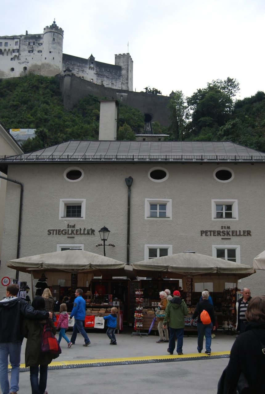 As we exited the cemetery we passed the entrance to Stiftskeller St. Peter, which claims that it is the oldest restaurant in Europe due to the fact that Charlemagne ate there in 803. We’d dined there in 1992, not quite as long ago as Charlamagne, and had a fine meal. We thought about returning but with the promise of many meals out coming up for us in Munich, decided to save the budget this time around.