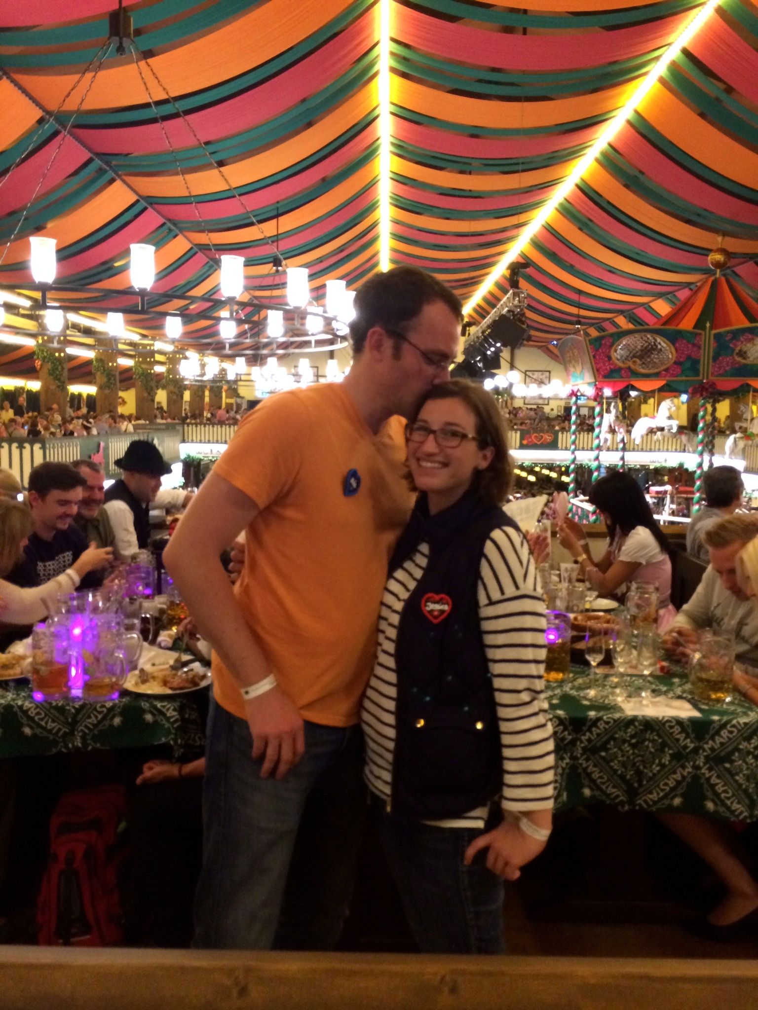 This would be my fifth trip, Joanna’s fourth, to Oktoberfest, but our first in a tent of this nature. To reserve a table means you pretty much have to be a local and so we were all treated to witnessing German’s enjoying fest as opposed to our other experiences where we shared it with other tourists. In the other tents the bands tend to play polka infused versions of classic rock songs. Here there was a smattering of that, but mostly it was the types of songs you’d sing if you grew up in a German town and frequented a local gasthaus or bierstube.