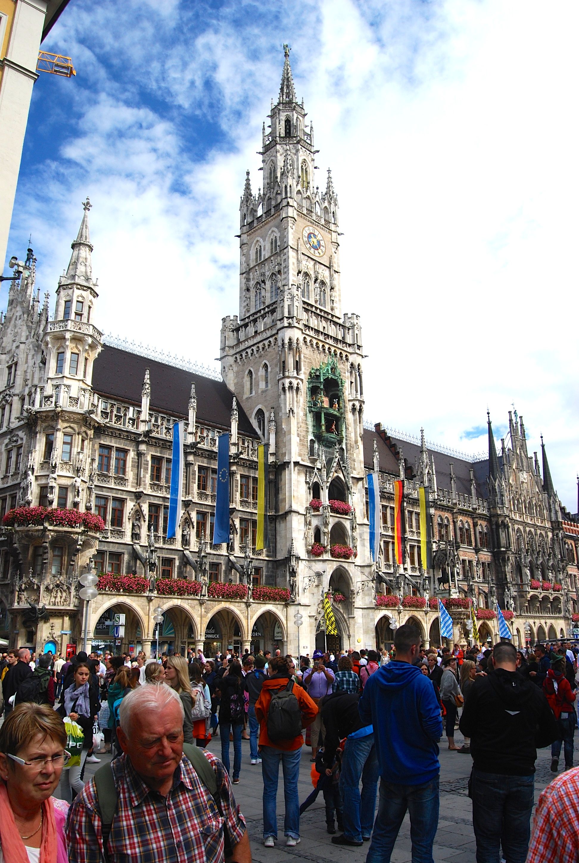 The weather forecast was bleak; indeed we would pay back the good days we had experienced earlier in the week. It started to drizzle slightly as we met up with the tour guide, then started to come down in earnest as we stood huddled with the rest of the tour group to listen to her introduction and a nice description of the New City Hall’s famous Glockenspiel, which goes at 11:00 am (one of three times each day).