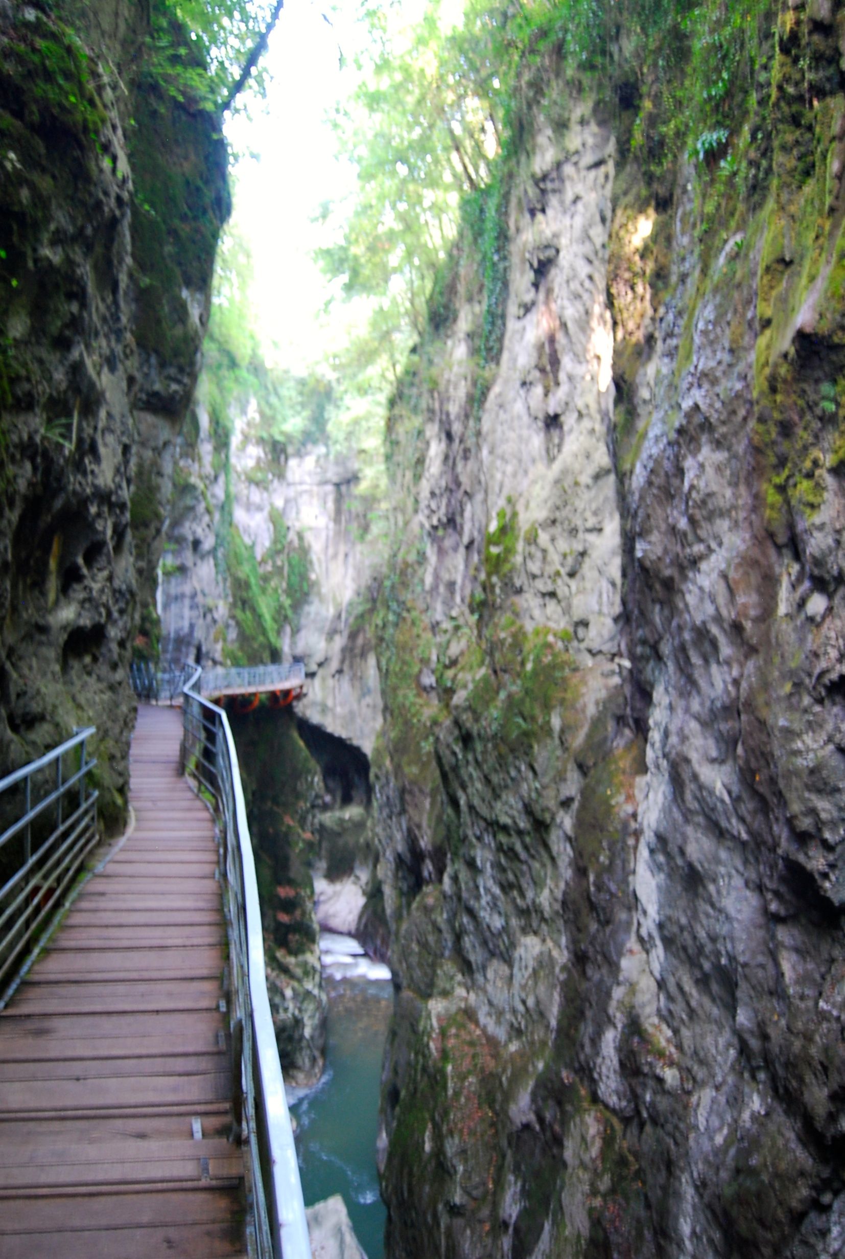 We parked in a lot at one of the two entrances to the Gorge, walked the short distance to the entrance and then made our way along a series of ledges and catwalks through the narrow canyon cut by the River Fier. This leads to the The “Mer des Rochers” a maze of fissured rock, through which the River flows as it leaves the Gorge.