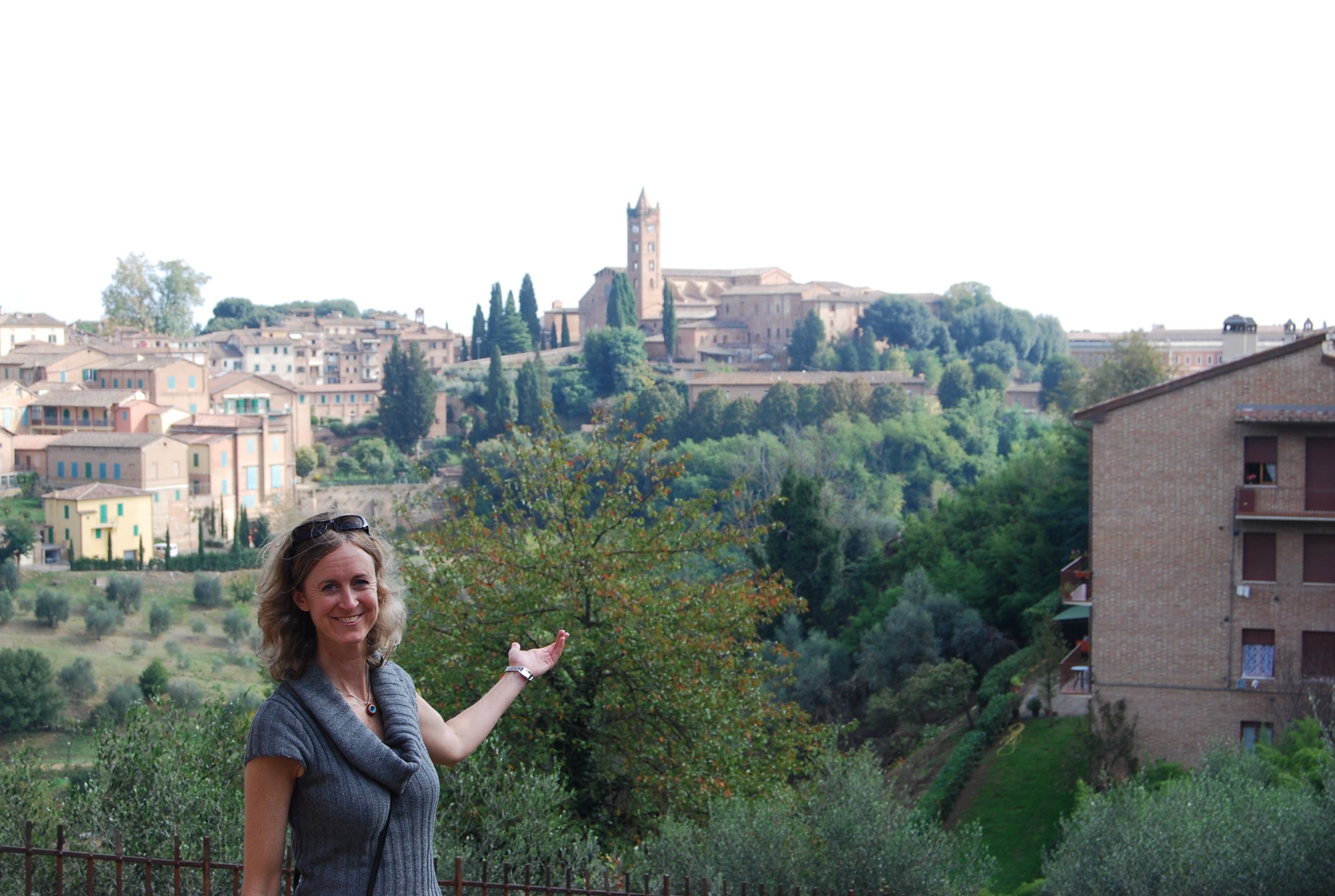 We returned to camp and prepared for the next day, Lyndsay retiring earlier than would be our pattern later after a long day in the air, on the train, topped off by a fine meal. Sunday morning we took the bus into Siena to roam the streets, stopping at the Piazza del Campo for a coffee and some croissants.