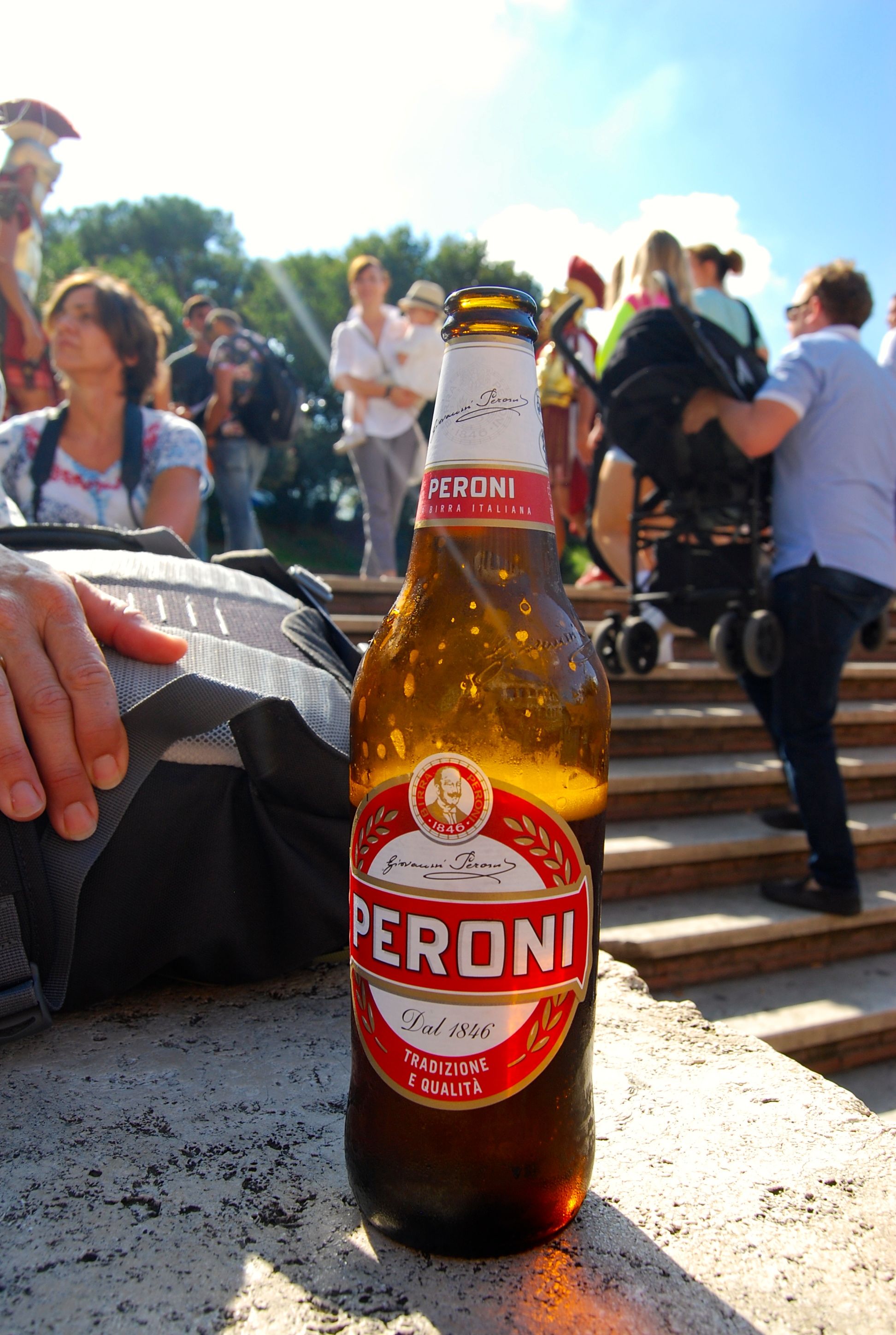 Post tour, we took a brief break outside gathering up our energies to tackle our next stop, the Roman Forum. It was another warm day and a large bottle of cold Peroni Beer has an amazingly restorative effect, one whose properties I can highly recommend.