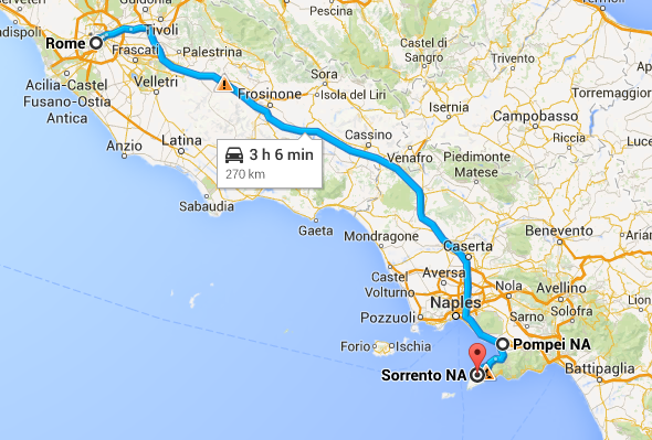 We completed our walking tour, having dodged an onslaught of tour groups from cruise ships, and made our way back to the car. Thus began an hour or more of harrowing driving through the crowded, clogged, and manic streets of Pompeii and the cities along the coast on the way to Sorrento.