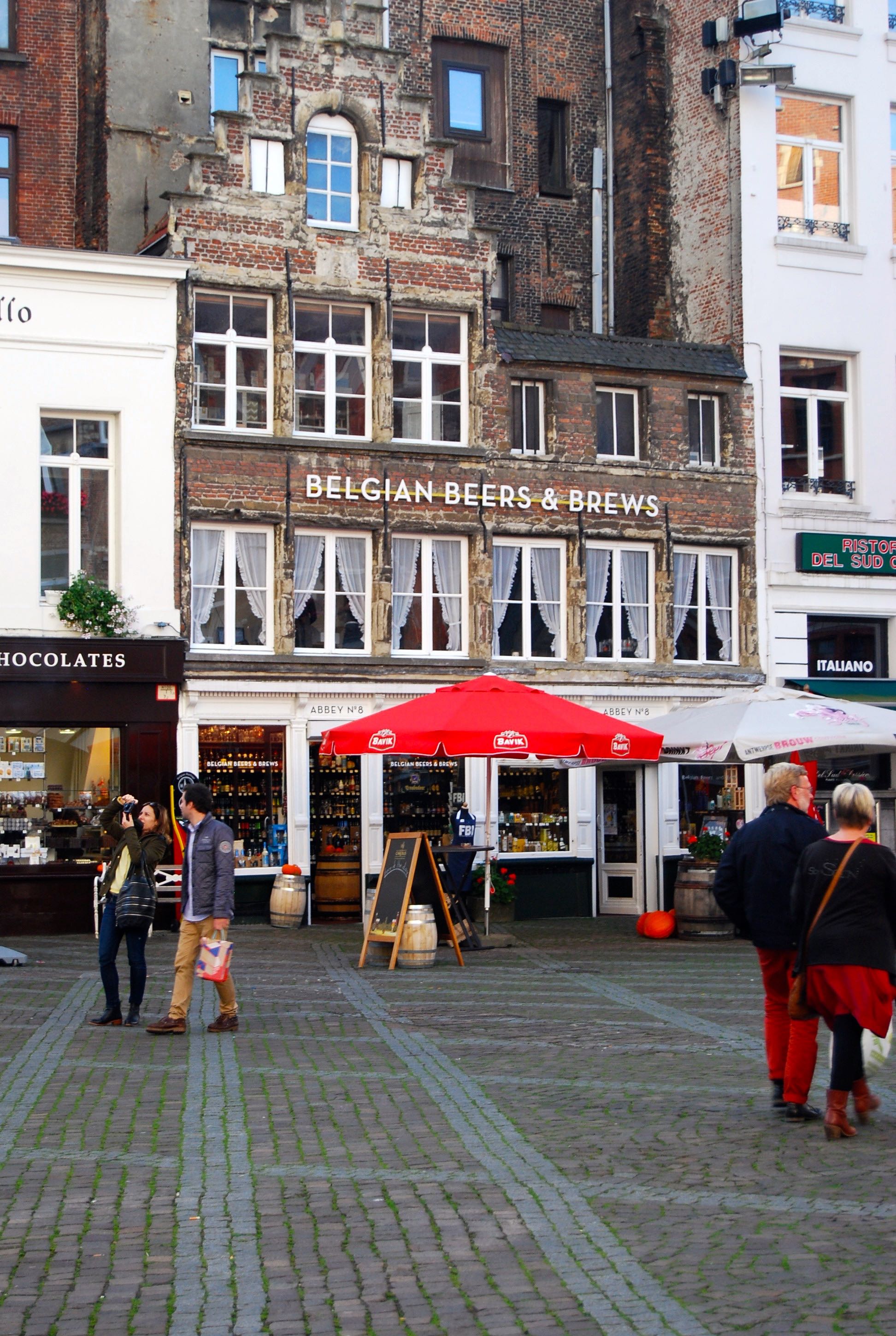 Antwerp’s largest church, its 400-foot tall spire dominates the nearby skyline. Without much compelling to see inside, we passed on paying to visit the interior and instead turned our attention to a small beer shop in Handschoenmarkt Square in front of the church.