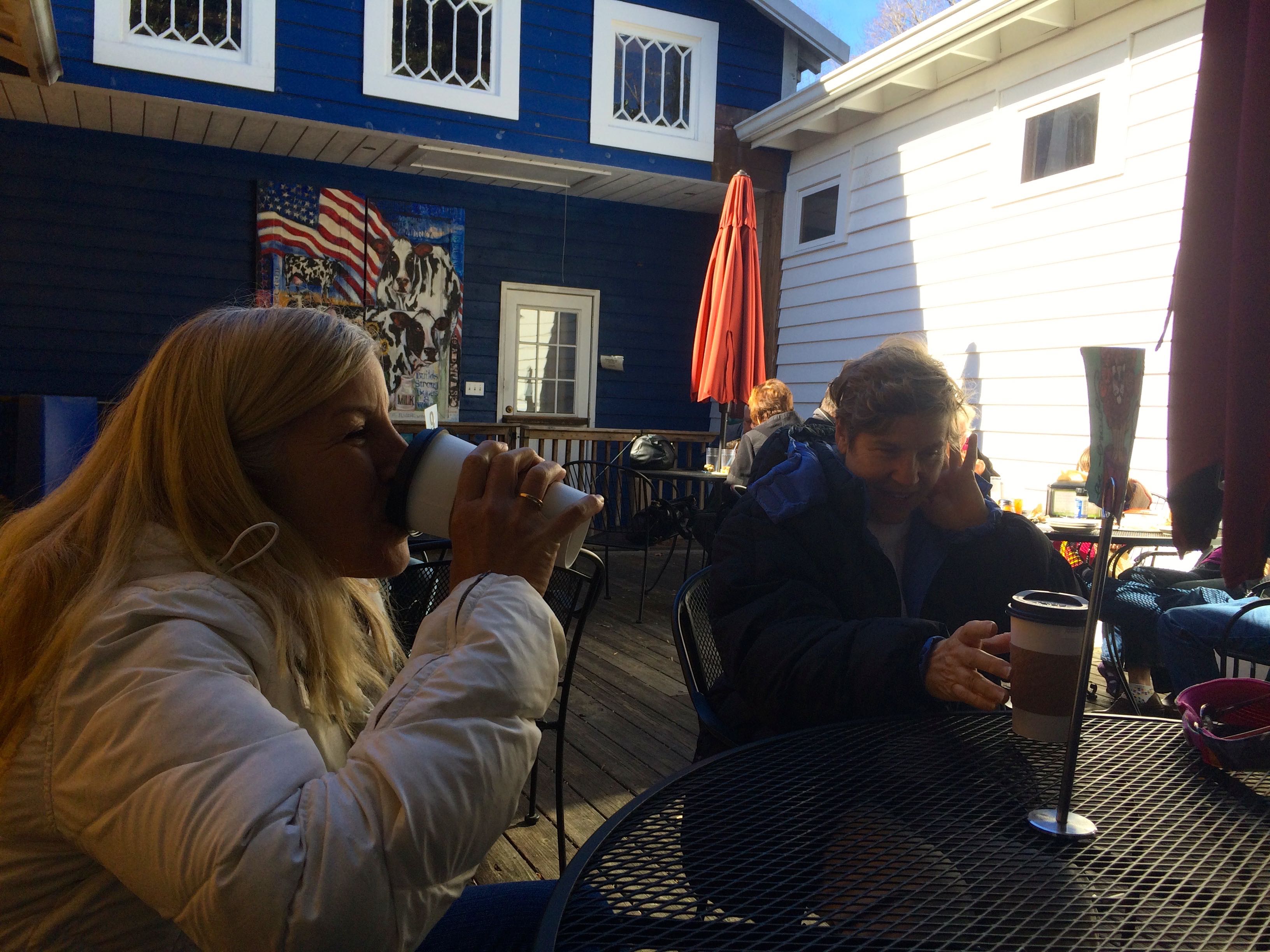 We took our leave of the property and made our way into nearby Flat Rock for lunch at a restaurant recommended by one of the park staffers, the Flat Rock Village Bakery. Known for their wood fired pizzas; Joanna and I instead split a bowl of hearty potato cheddar soup and a delicious Chicken Salad Sandwich (mixed with celery, red onion, walnuts, dried cranberries and fresh dill). It was quite crowded inside and although a bit cool, the four of us sat at an outside table enjoying a crisp and cool fall afternoon.