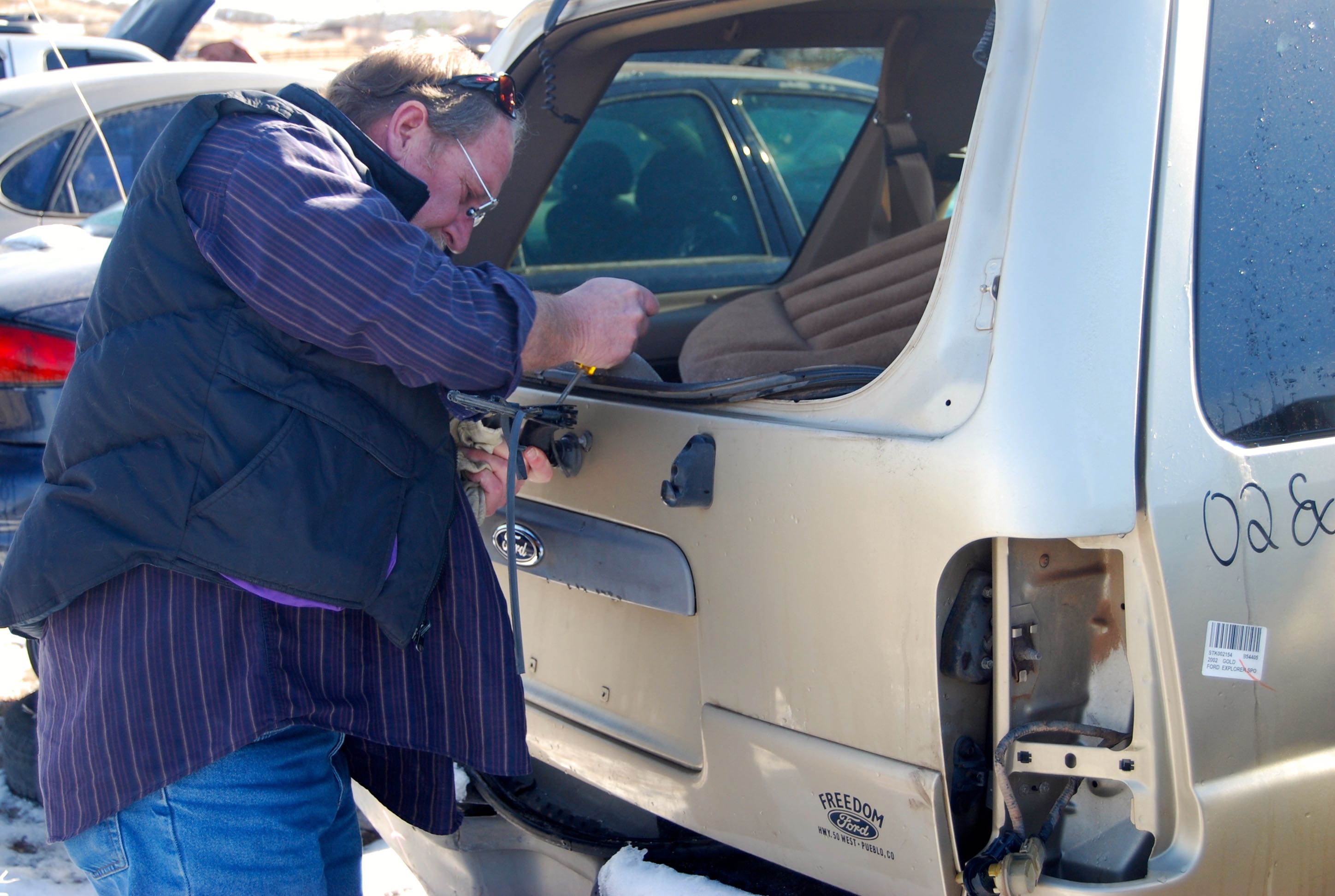 And thus we went enjoying two different afternoons. Our sojourn to Littleton was a visit to the past as this is an area that Doug has lived in off and on over the course of the last thirty years. Tucked up against the base of the Front Range, whose tall peaks form a visual border against a landscape of high plains. We spent our time productively at the U-Pull, walking the rows of battered and partially disassembled cars of call makes and models.