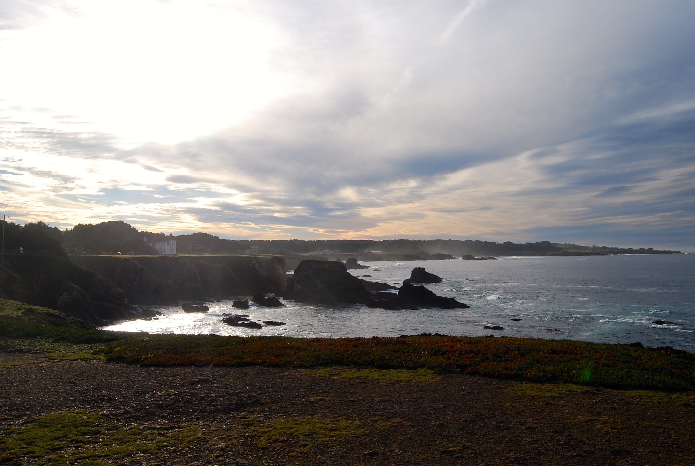 I stopped for a quick ride through at Russian Gulch, closed for camping for the season, took a picture of the bridge at it’s small bay and then climbed up to the highway and rode the final couple of miles into Mendocino. This bit of Cape Cod on the west coast sits on a piece of land jutting out into the Pacific, the Mendocino Headlands, offers striking views both north and south along the coast.