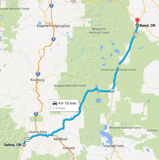 Just before getting onto the I-5 southbound we made an obligatory stop at the Dutch Brothers Coffee Booth next to the on-ramp, our go to coffee place for the first road cup of the day. We traveled south towards Medford/Ashland, Joanna at the wheel for the first shift and exited in Gold Hill to take Highway 62 through Crater Lake National Park to Highway 97 which would then take us up to Bend.