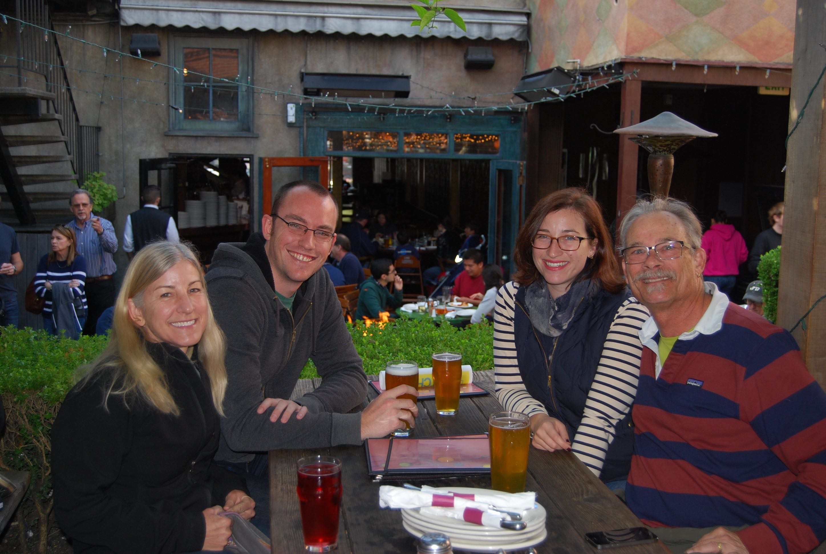 Being Sunday we easily found street parking a block away and entered the well lit and appealing main bar area to order a round of brews. Our destination though was the even more inviting outdoor beer garden where we grabbed a table and proceeded to enjoy our drinks while engaging in a rousing game of Cornhole, a very popular game back in our neck of the woods. It wasn’t going to be our weekend for game play as Jessica and Kris again thumped us, but there will be more games in the future when we can reclaim our dignity.