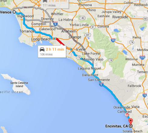 We returned to the house and after a delay related to a couple of return trips to Santa Monica Ford to resolve a repair issue with Joanna’s Mom’s car, we hit the road for Encinitas. We’d been looking forward to this three-night retreat back down at the vacation apartment, a break from what had been five weeks staying as guests with folks we know and love. Although always a pleasure to visit people, we’d come to realize that future trips would need to incorporate a balance of staying with friends and family and staying by ourselves.