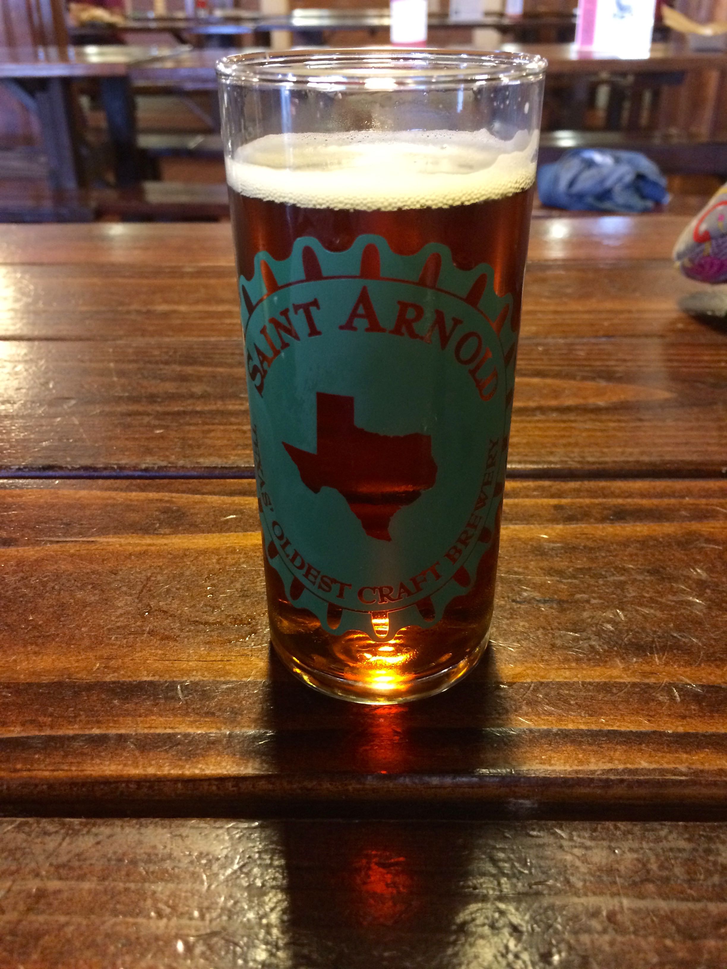 Momentarily full, we drove over to Eleanor Tinsley Park for a walk along the Buffalo Bayou. It was a gorgeous winter’s day, mild temperatures, blue skies and just the right amount of physical movement to build up a thirst that would be quenched not long after by a stop at the St. Arnold Brewing Company. Self-described as the oldest craft brewery in Texas, the large tasting and eating area very much resembled a German beer hall, a welcome sight to our eyes. A ten-dollar cover charge buys you an eight-ounce taster glass good for four beers, essentially two pints for five dollars apiece.