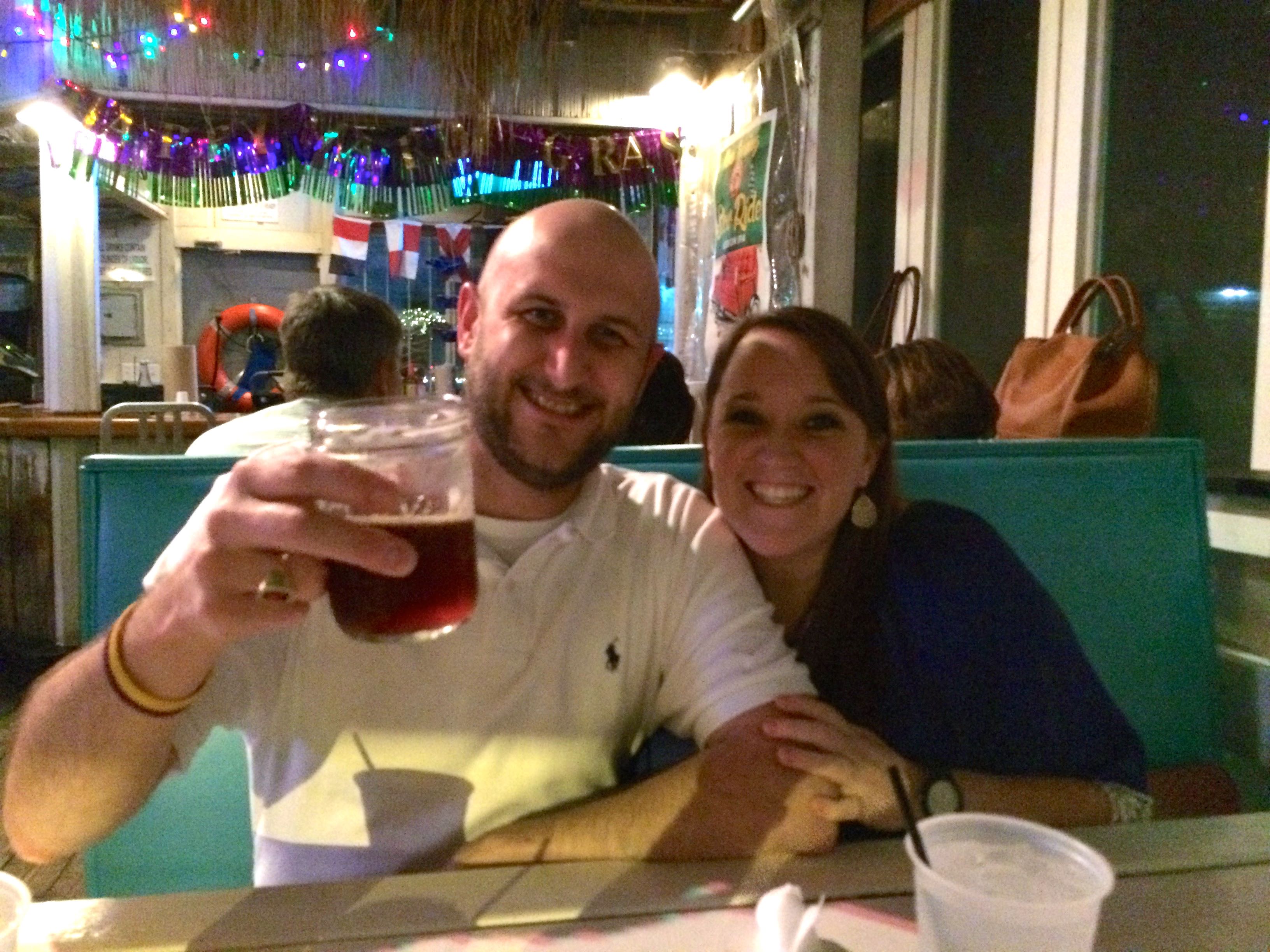 James and Leigh stopped by to pick us up for dinner bearing two mixed six packs of local micro-beers, all the more the shame as we needed to head to the restaurant without being able to taste one with them. Our destination was Spanish Fort and the Bluegill Restaurant, out on Battleship Causeway. When you first enter the restaurant it has a more formal indoor feel; we made for the back of the place, out on an enclosed deck that looked out upon Pass Picada. We took our seats at a booth at the exterior windows, offering a last glimpse of the setting sun.