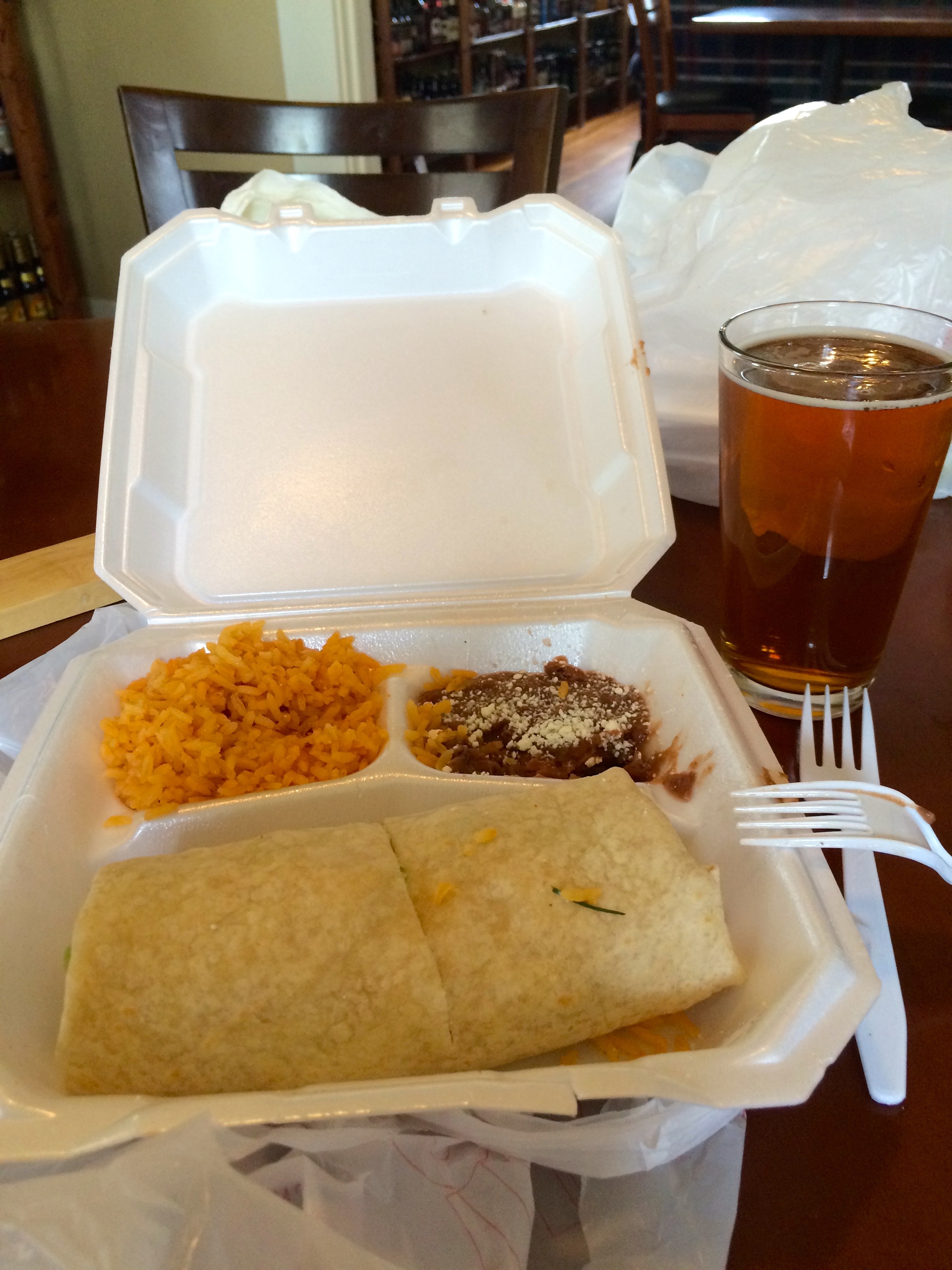 Eric and I would meet up again a week later on the 10th for lunch in Cornelius. With him were his rabbi and one of his co-workers and our first stop was for a to go order at Tienda Mexican, a food truck on Old Statesville. It will come as no surprise that I ordered a Carnitas Burrito. From there it was a short drive down to the Crafty Beer Guys brewpub, located in a old craftsman style house also on Old Statesville. A leisurely lunch followed, good food and nice beers fueling a discussion both philosophical and off-the-cuff.