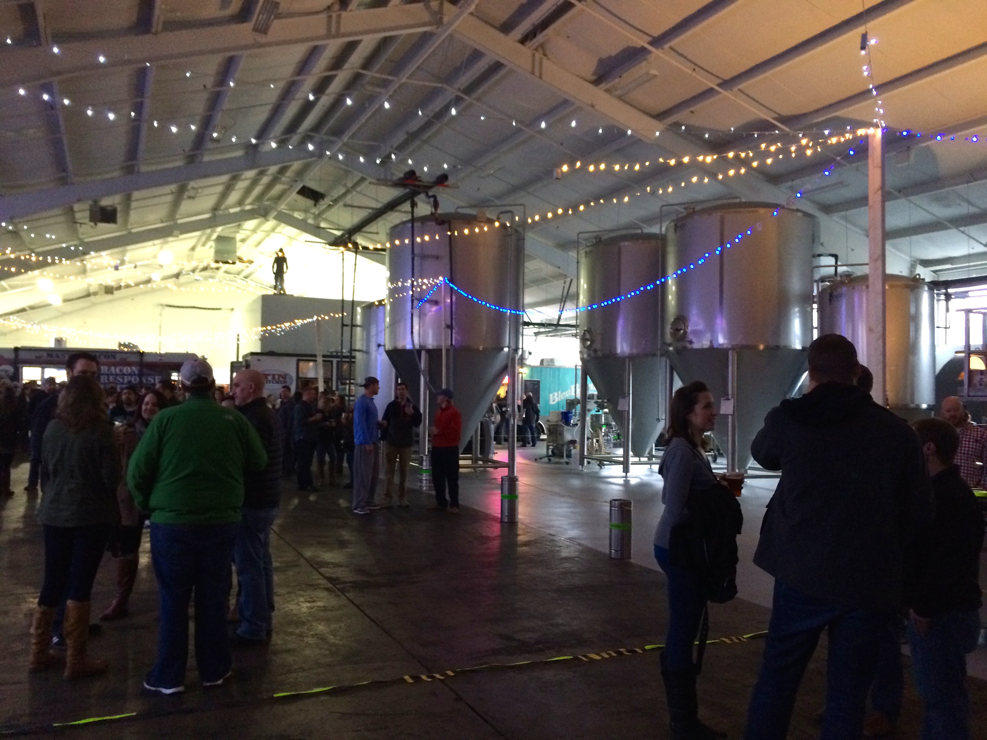 A week later on a very cold Saturday afternoon, we made our way to the Unknown Brewery for their one-year anniversary celebration. I’d been a year before for the grand opening and had a great time, running into Becky and Mark in the parking lot where the big party was held. My concern for the anniversary event was that it would be held outdoors again so we were both relieved when it turned out that they’d made room in the brew house for the party to take place, including a bandstand and three local food trucks from The Tin Kitchen, Bleu Barn Bistro and MasterBacon.