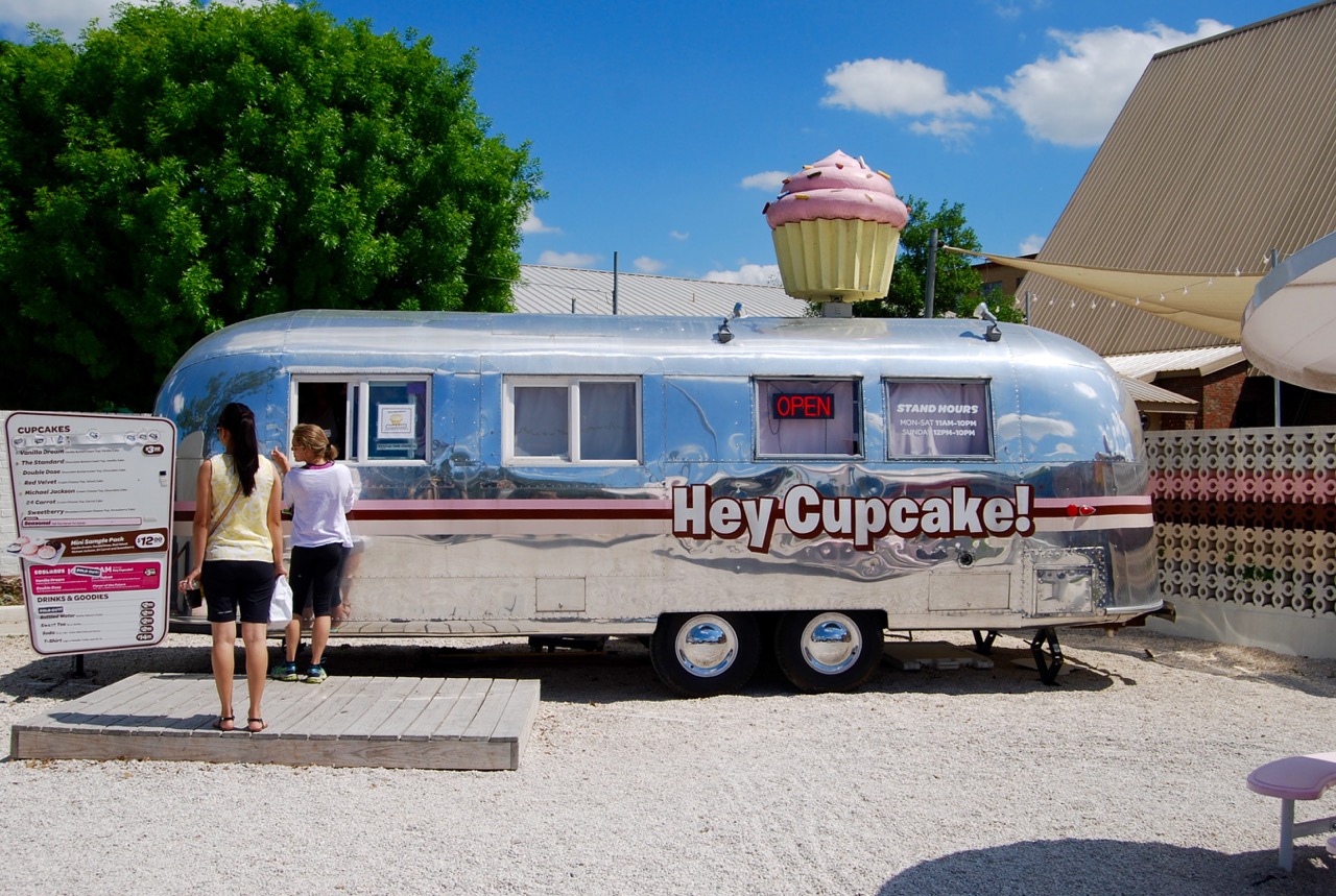 Walking across the street and down multiple blocks, we checked out the shops. Our first stop was for a cupcake at Hey Cupcake, a shop devoted to those treats in a great looking Airstream Trailer. We ordered the Coco Loco (Coconut Cake and Coconut Buttercream frosting) and fell on it like a pack of ravenous wolves.