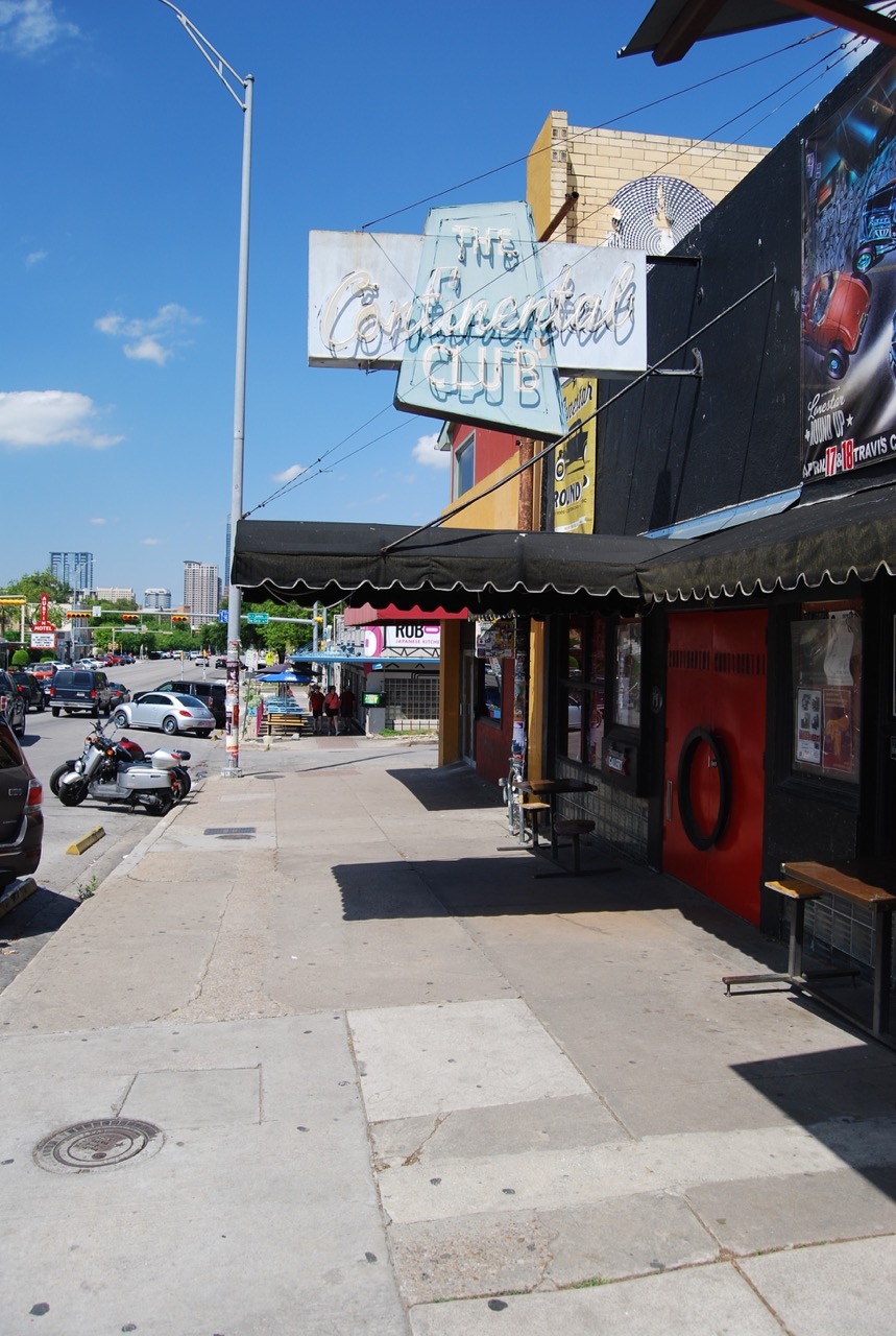The next day would be full as well, with a longer bike ride in the morning as we tried and failed to get up to the lake but did end up in a nice neighborhood with many new homes under construction, replacing older dwellings, just off South Congress. We returned to camp, showered and then drove back on the route we’d taken with the bikes, turning on to South Congress and driving back towards the center of town until we found a parking spot right in front of the Continental Club.