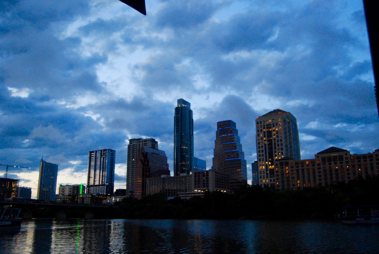 The bats don’t leave the Congress Avenue Bridge until just after dusk giving us an hour or so to kill on the water. We floated west on the lake, under a couple of bridges while Terry provided running commentary on the various sites we were viewing, life in Austin, and how much the town was changing as it continued to grow in population. As the sun started to sink in the west we cruised back towards the bridge, crossed underneath and then lined up on the other side, where we slowly circled waiting for the bats to begin their exodus.