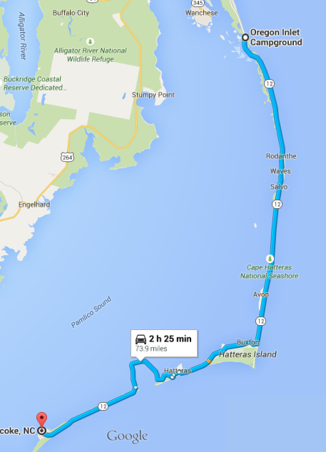It turns out the route we’d envisioned is feasible and there were four ferries to Cedar Island the Monday we planned to drive, with two in the morning at 7 and 10 am. The latter was sold out due to a weekend long festival and so I reserved a spot on the early trip. It was starting to get late in the day and we retraced our steps back to camp, stopping in Hatteras for a quick bite at a Subway, eating in the car so we could each drink a cold beer from the cooler.