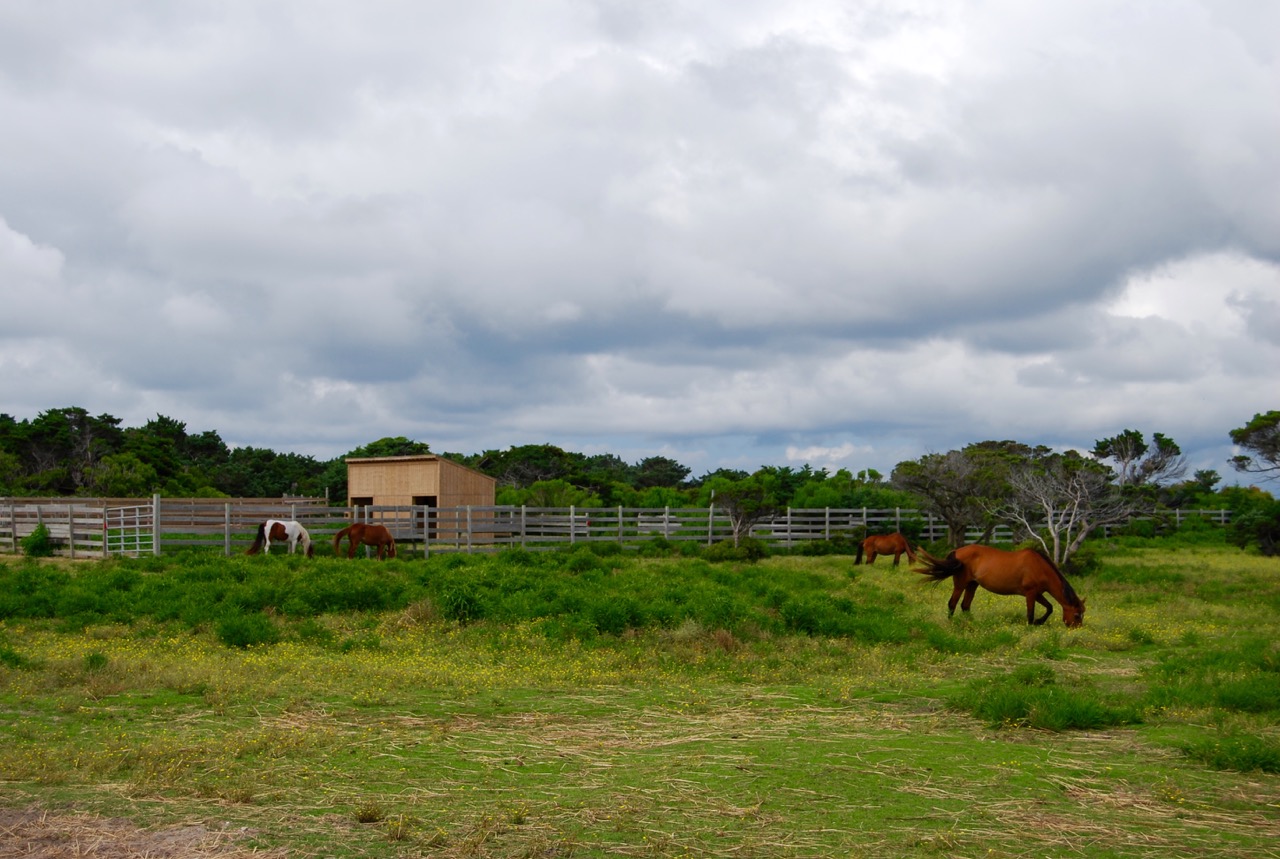 We disembarked at the Ocracoke Ferry Terminal and drove about five miles south on the island to stop and visit the Banker Horses in their pens managed and maintained by the National Park Service. Legend has it that they were left here by shipwrecked explorers in the 16th or 17th century. They served the residents of the island as beasts of burden at work and play, in beach rides and races; in the late 1950s, the Ocracoke Boy Scouts cared for the horses and had the only mounted troop in the nation. The horses were permanently penned in 1959 to prevent grazing and the National Park Service has cared for the remaining herd since the early 1960s.