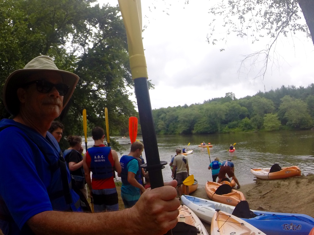 It was an overcast day with the threat of rain (they cancel trips if thunderstorms are forecast) which didn’t deter us as we’d likely be getting a bit wet anyway. Our shuttle driver was a young and irreverent fellow, full of good humor leaving us primed for a fun experience. We off loaded at the put in site, waited our turn to climb into our two-man kayaks and soon shoved off for fairly lazy trip down the shallow but navigable river.