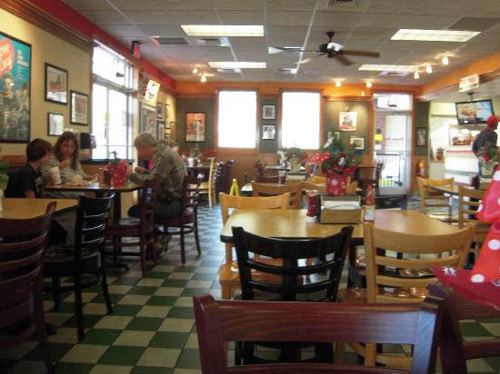 Nearing Laurinburg, about half way, a clamor for a lunch stop arose and after a false stop at Cook-Out (they only had outdoor seating and it was hot) we drove a couple of blocks over to Smithfield’s, a North Carolina chain featuring chicken and BBQ. Joanna and I split a Shrimp Platter (Shrimp with coleslaw, French fries, and hushpuppies). The shrimp were a small variety, coated in a batter and lightly fried. It was a good meal to split and provided us with just enough food to get us through the afternoon until dinner time.