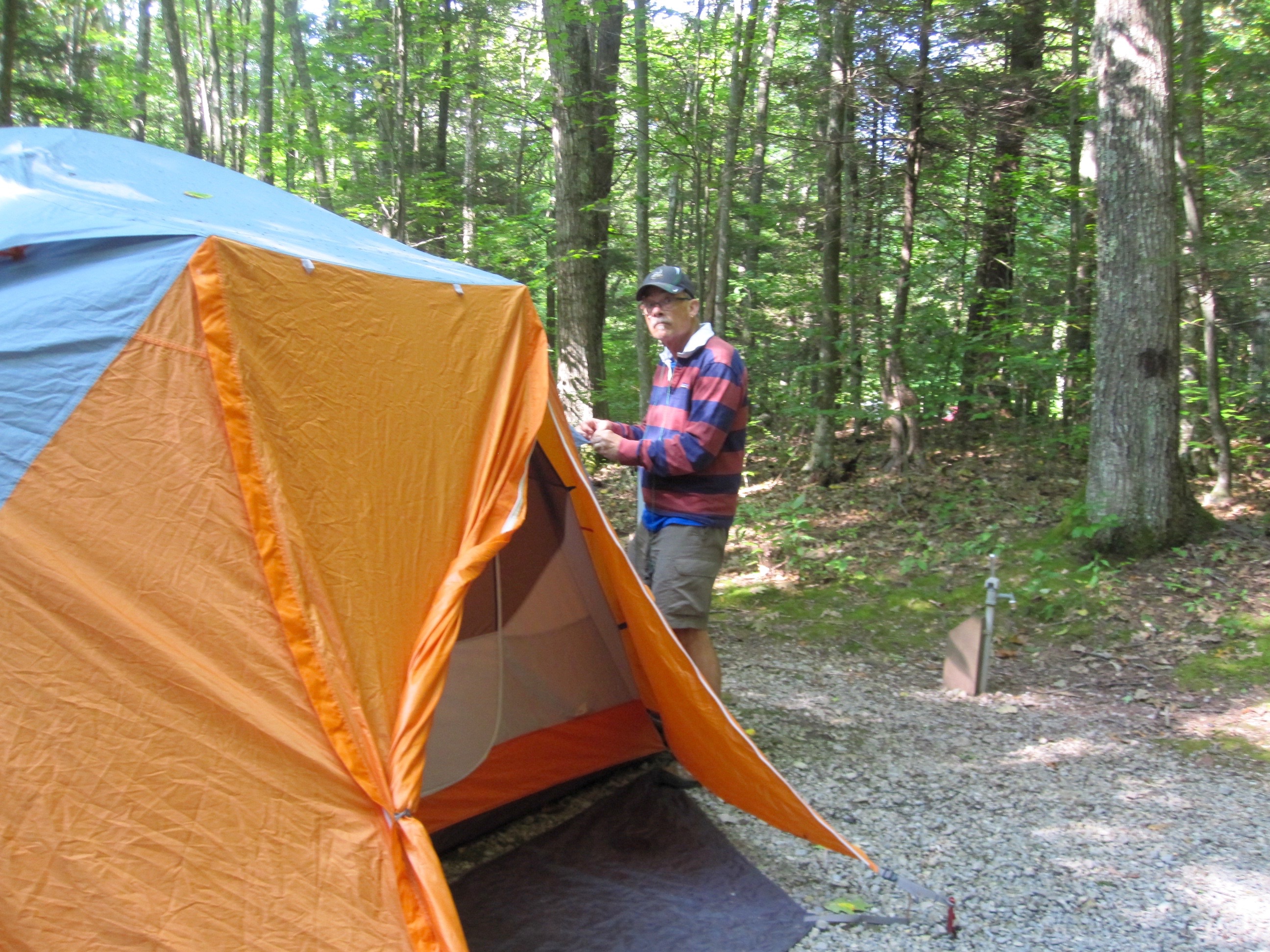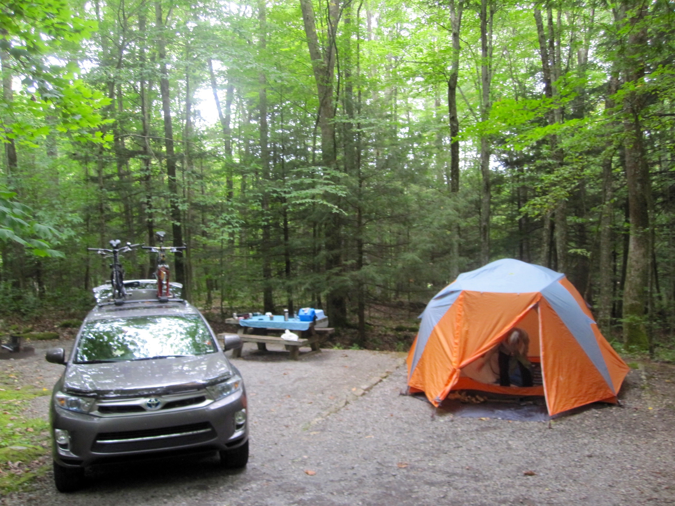 The rest of the group arrived later that evening and we walked up the hill to greet those we knew and introduce ourselves to those we didn’t. After an hour or so we made our way back to our site and crawled in for the night, one that would bring strong winds and heavy rain, weather that was forecast for the whole weekend. Our new tent, the Marmot Limestone 6, held up nicely as we had witnessed at the Outer Banks and we slept well that night, warm and dry in our little home away from home.