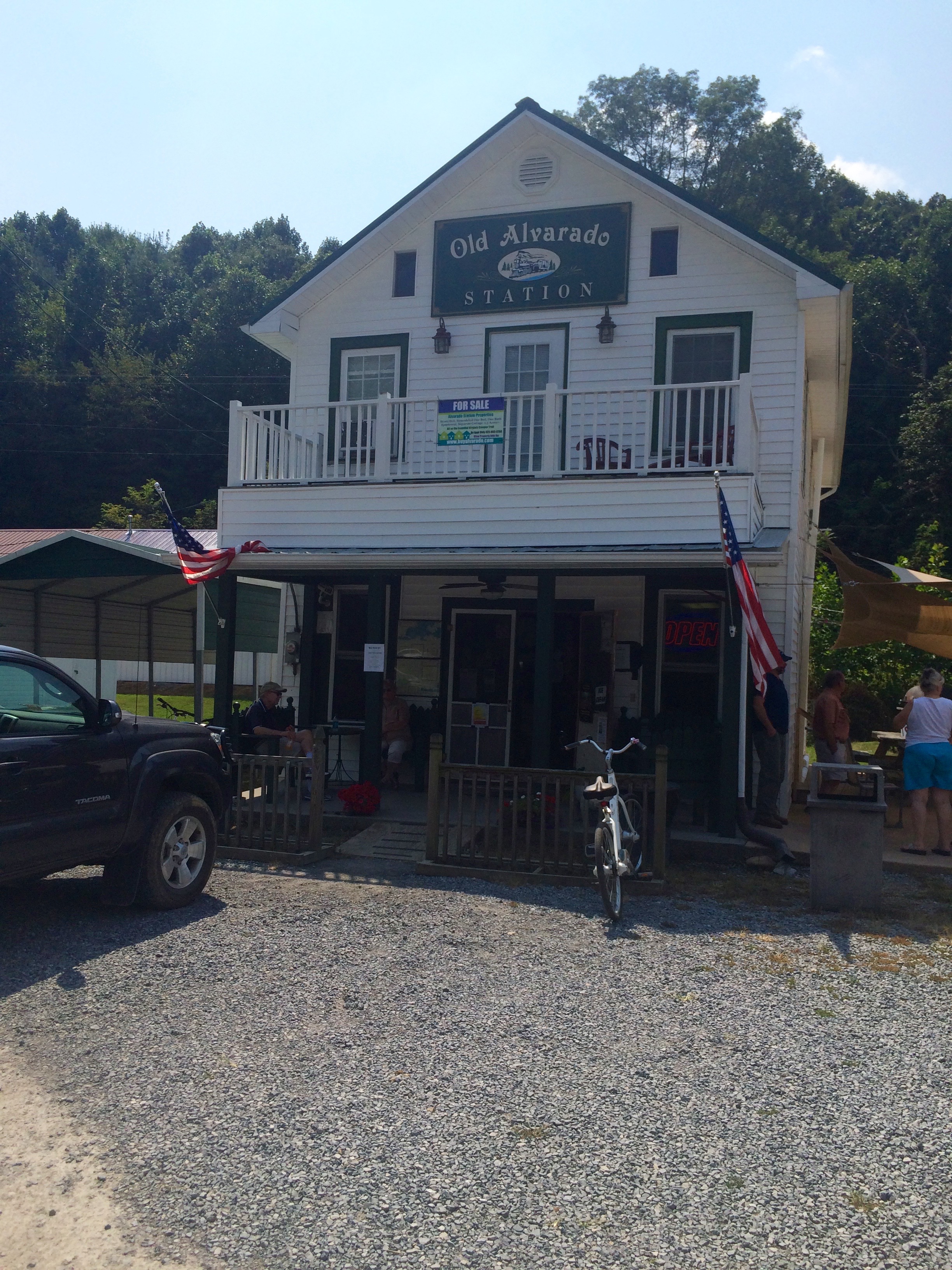 We hit the Abingdon trailhead, took a brief break while filing up our water bottles, snapped a picture of a gigantic Oak tree estimated to be over 150 years old and began the ride back to Damascus. The familiar landmarks flew by until we hit the one I was waiting for, the Old Alvarado Station, a former train stop and now a place to buy food and drink.