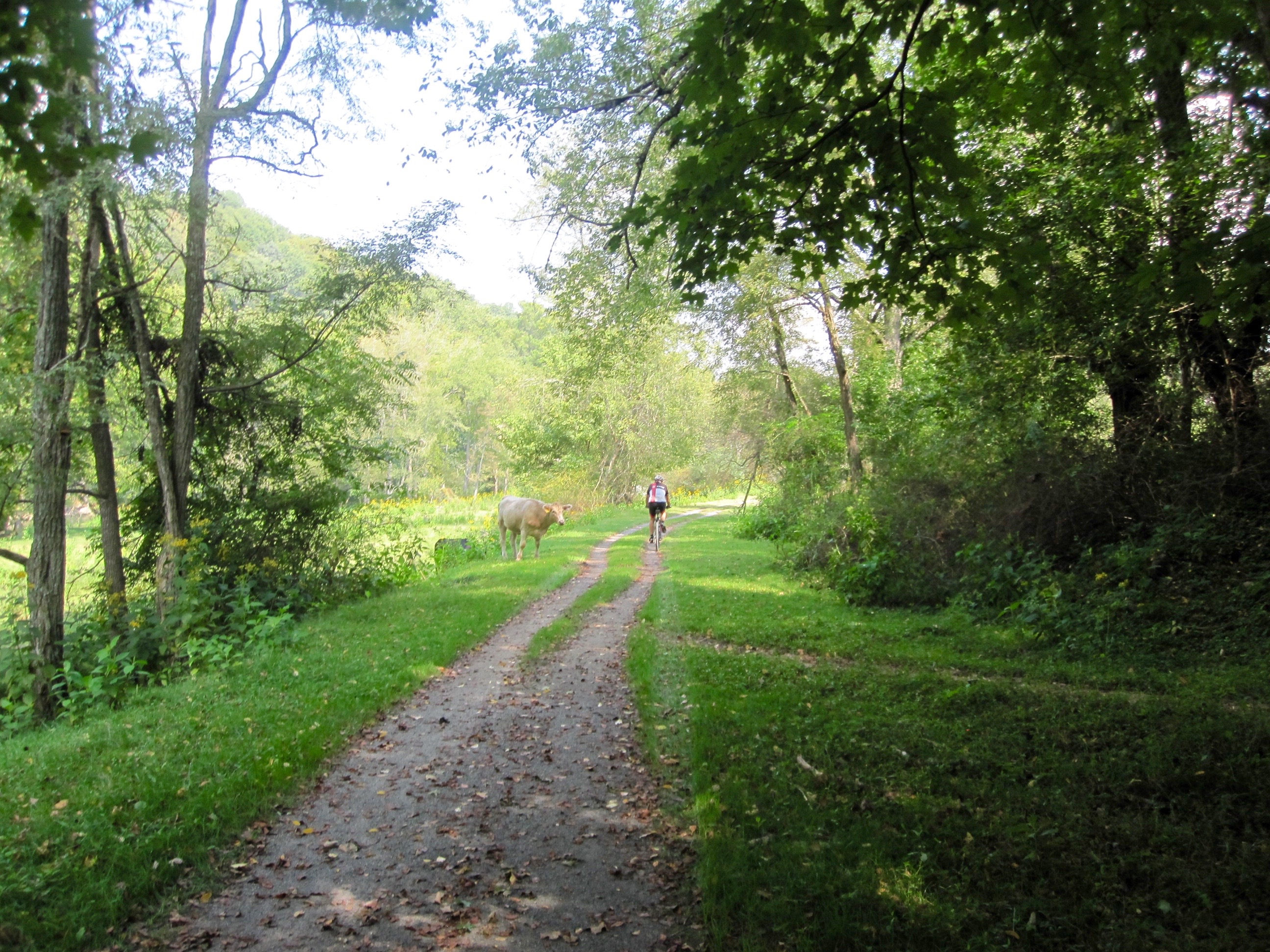 This would be the third time we’d ridden the trail, but the first riding out of Damascus. Regardless, it was a pleasurable ride, sailing past familiar points of interest. A little over halfway to Abingdon we happened upon another cyclist while stopping to open one of a number of gates that keep livestock from wandering onto the trail who I would ride with almost all the way into town.