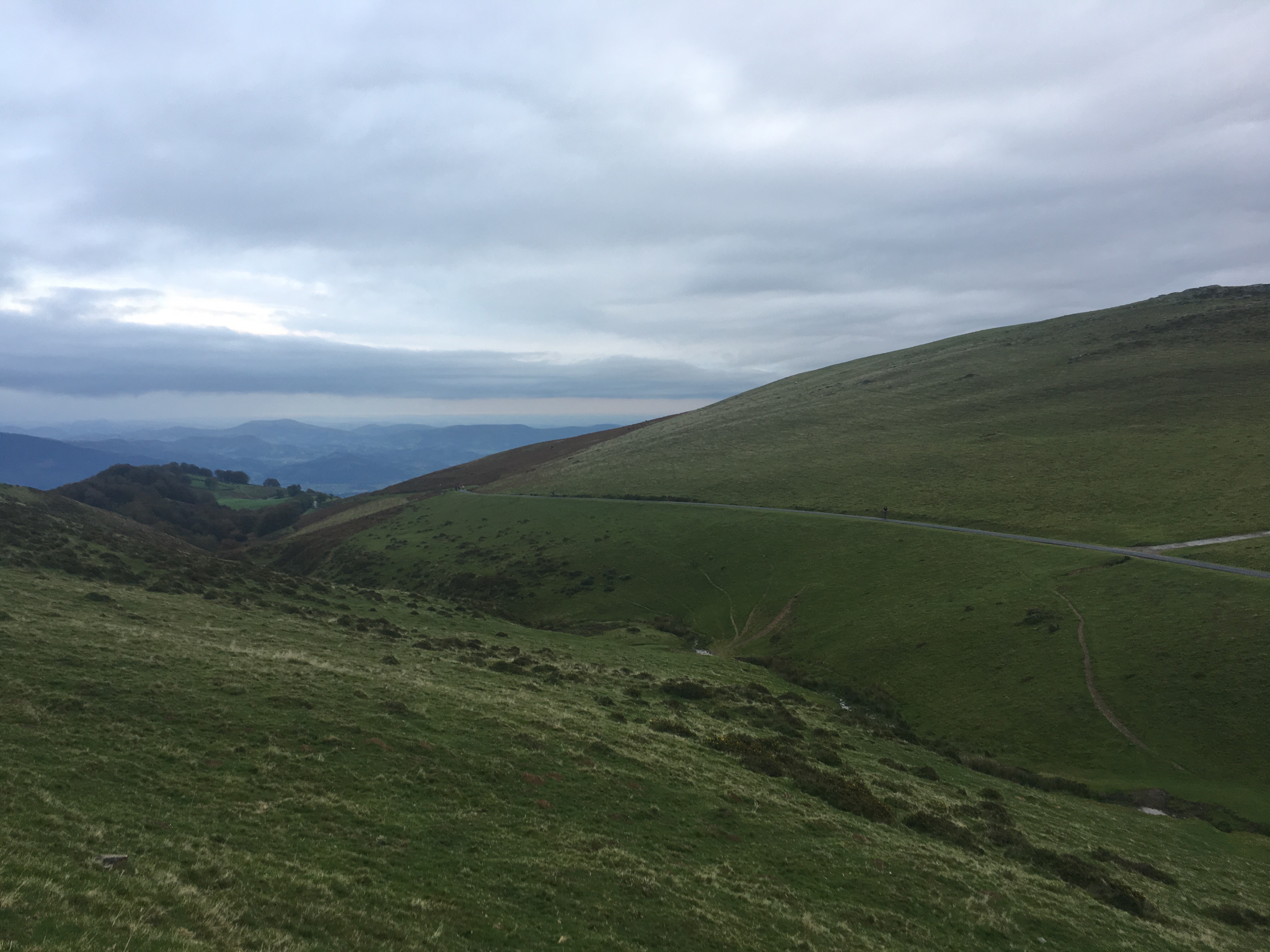 Breakfast was multiple pieces of toasted baguette with butter and jam with coffee, nothing exotic but filling enough to sustain us for the first few hours of walking. And walk we did, 12 miles or so, that big amount of elevation gain at the start and a long painful downhill at the finish. It was a foggy overcast day to start and by the end we’d have a heavy drizzle, but walking through the mountain fields, viewing the sheep, cows and horses grazing against the backdrop of fog shrouded peaks and valleys would have produced a nearly mystical experience if it wasn’t so freaking hard.