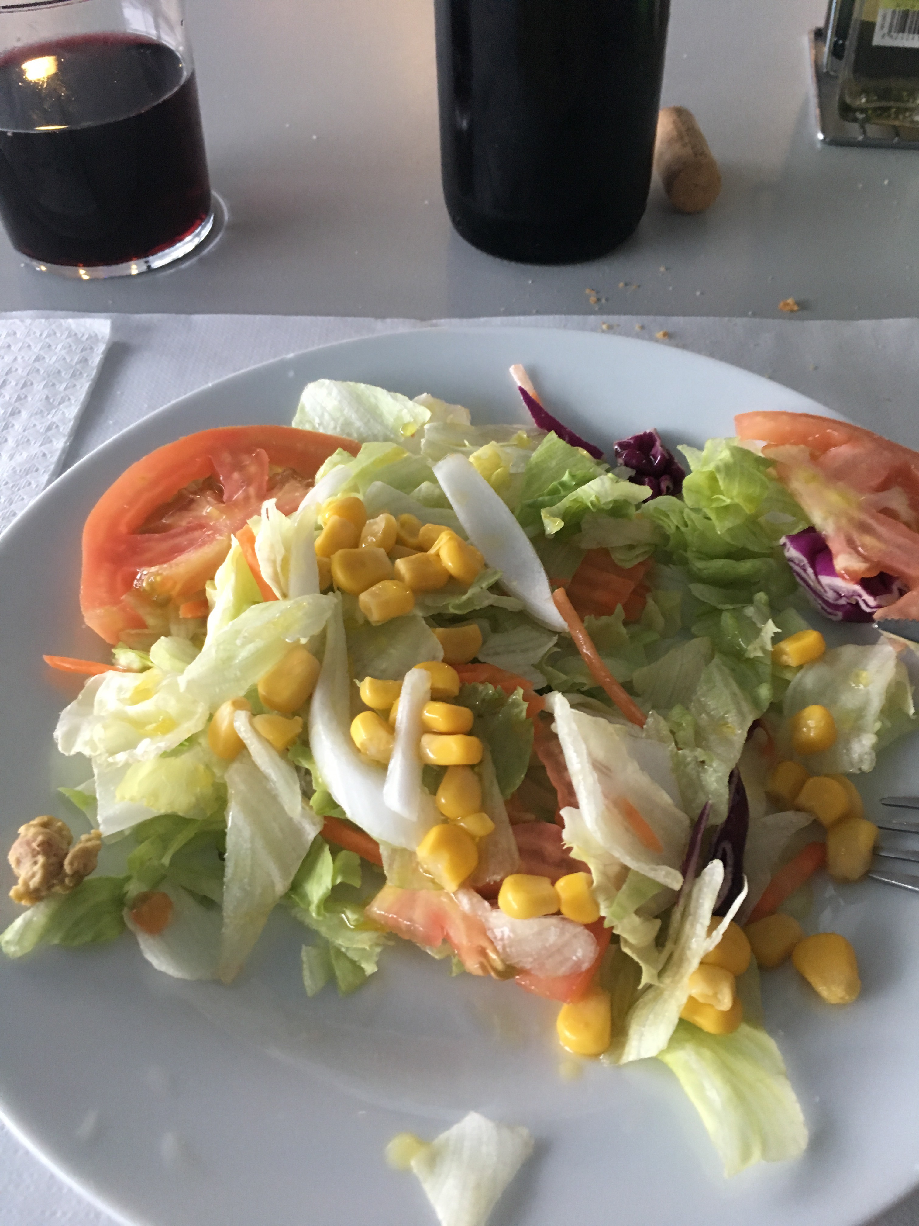 Joanna a lentil soup and , for I a mixed salad and pork stew. Dessert was something sweet but ultimately not memorable.