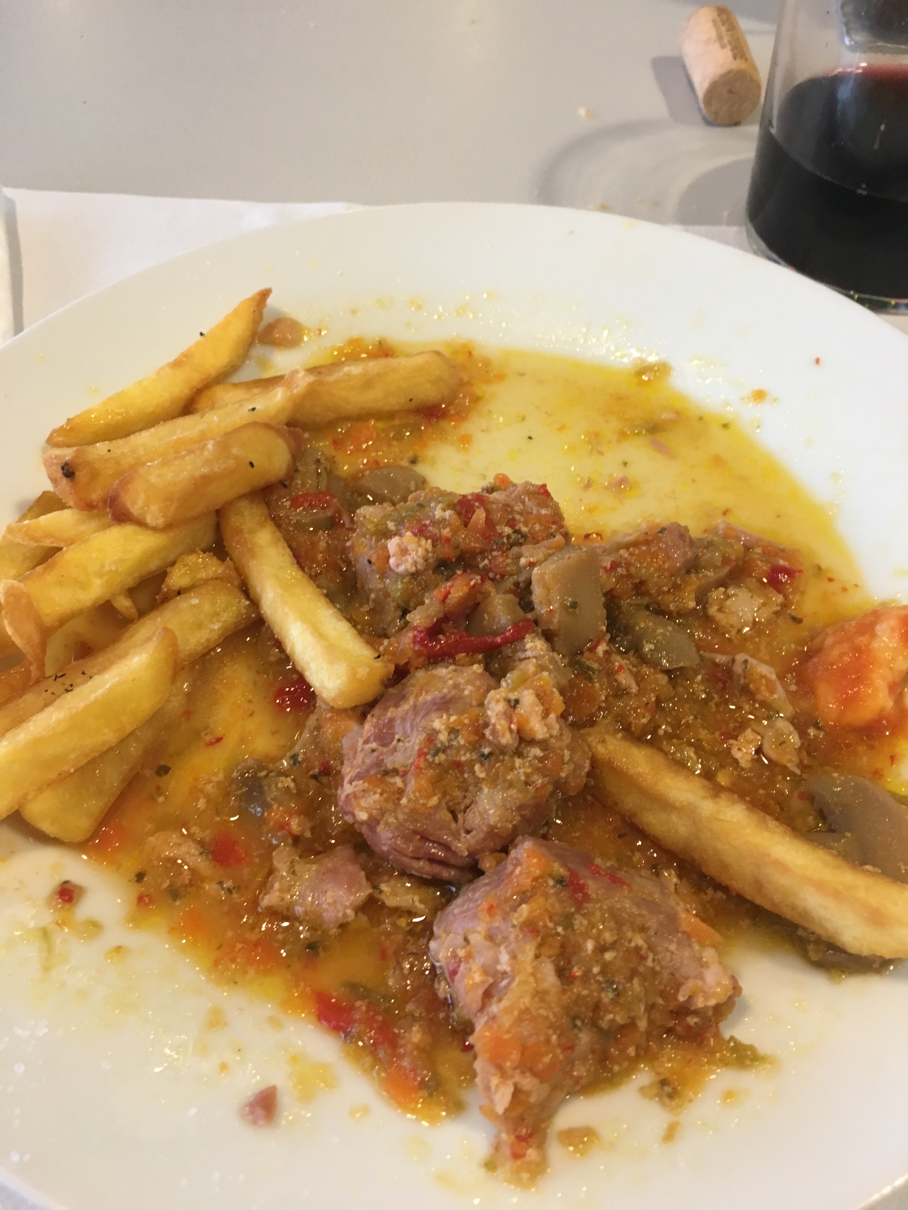 This was filing but unremarkable stuff, camp food so to speak. But with a bottle of wine included there wasn’t much to complain about. We walked back to the Usoa, watched the end of the World Championship bike race from Bergen with Peter Sagan winning for the third time in a row after his disheartening disqualification from this year’s Tour de France.