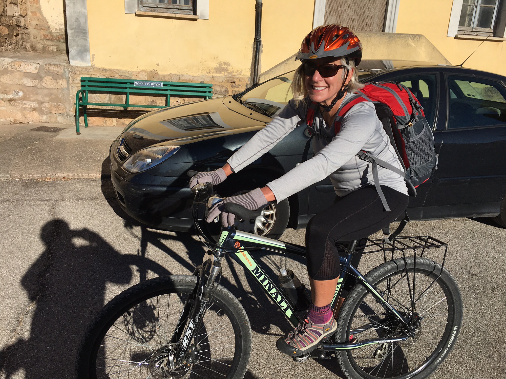 Right on time the albergue opened and we registered, found our beds in the two bunk pod, stashed stuff in the adjacent lockers and met Tim downstairs to walk over to the Mundi Camino office, fifteen minutes away. We introduced ourselves to Oscar and I quickly explained that plans had changed and not only would Joanna be joining me but that Tim also needed bike. And so, about 30 minutes later the deal was done and at a good price, 15 euros a day for each bike, 20 euros for each bike to be picked up at the end of our adventure, a helmet apiece, one set of panniers for 20 euros, and a spare tube, pump and tire levers to round out the rental.