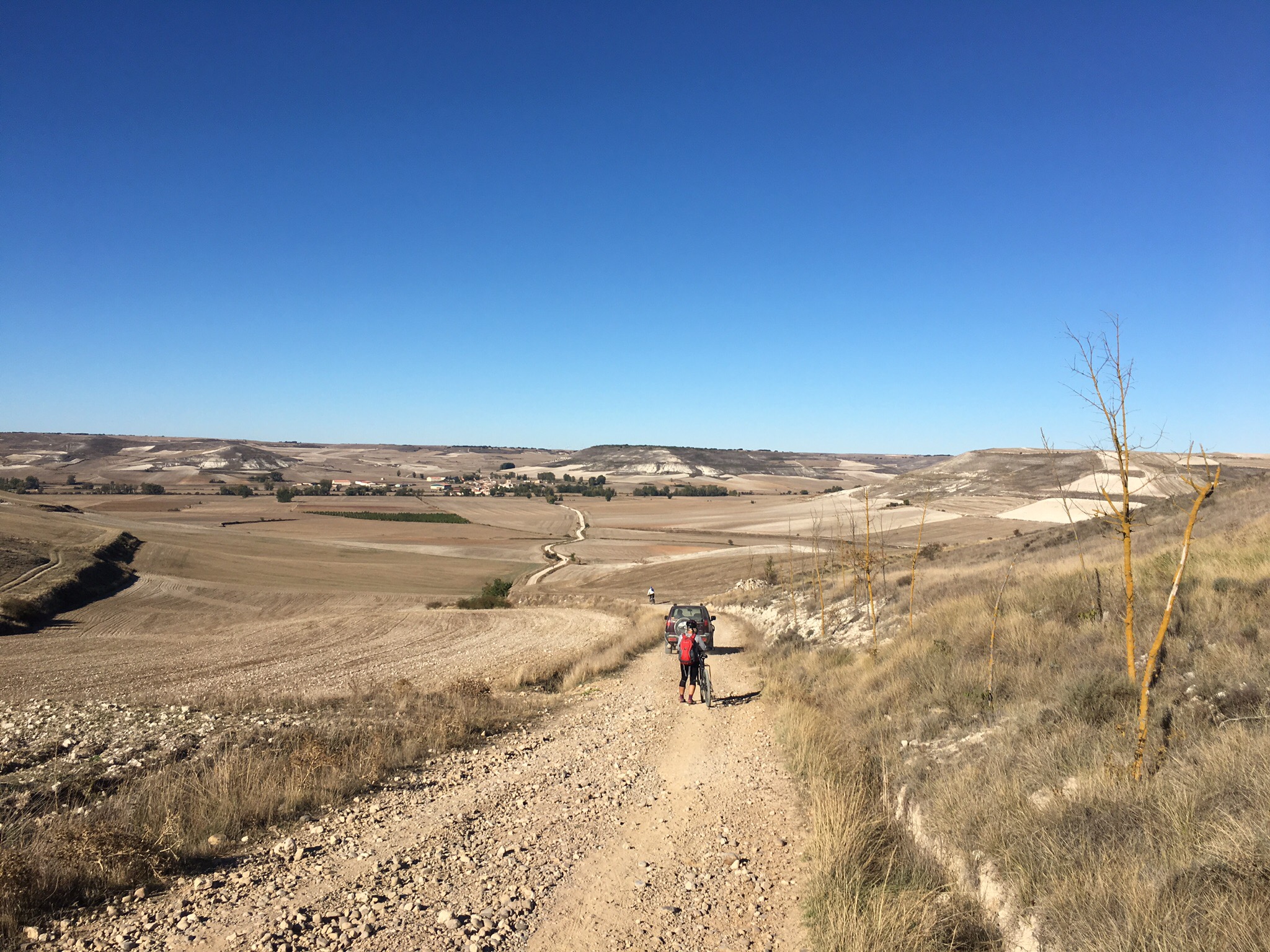 Our destination the next stage was Carrion de Los Condes, where we would stay at Hostal Albe for a phenomenal 28 euros a night for a large room, double bed, bathroom and attached kitchenette (which we didn’t use). The entire day of cycling went smoothly except for my flat tire anxiety as we couldn’t resolve the pump or tube issue until the next day in Sahagun, as it was a Sunday and that was where the next bike resource was located.