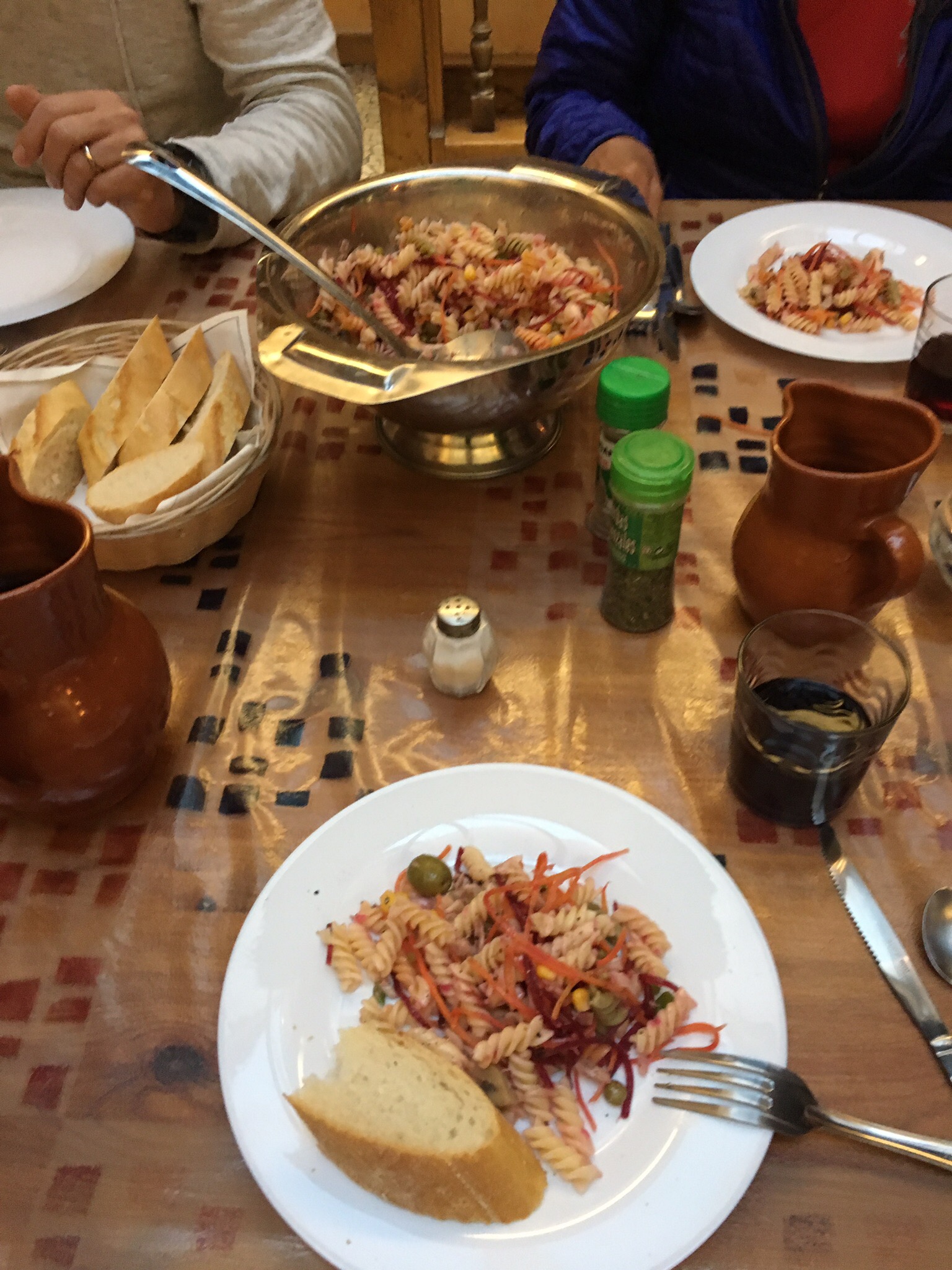 Indeed for much of what we consume, the prices are much lower than what we would pay at home, even with the exchange rate thrown in. Given how much wine we consume daily, it seems like we’re actually making money as we drink. We returned to Viatoris, killed the rest of the afternoon and then took in dinner there, a pilgrim meal for 11 euros apiece that would be one of the better ones of the trip.