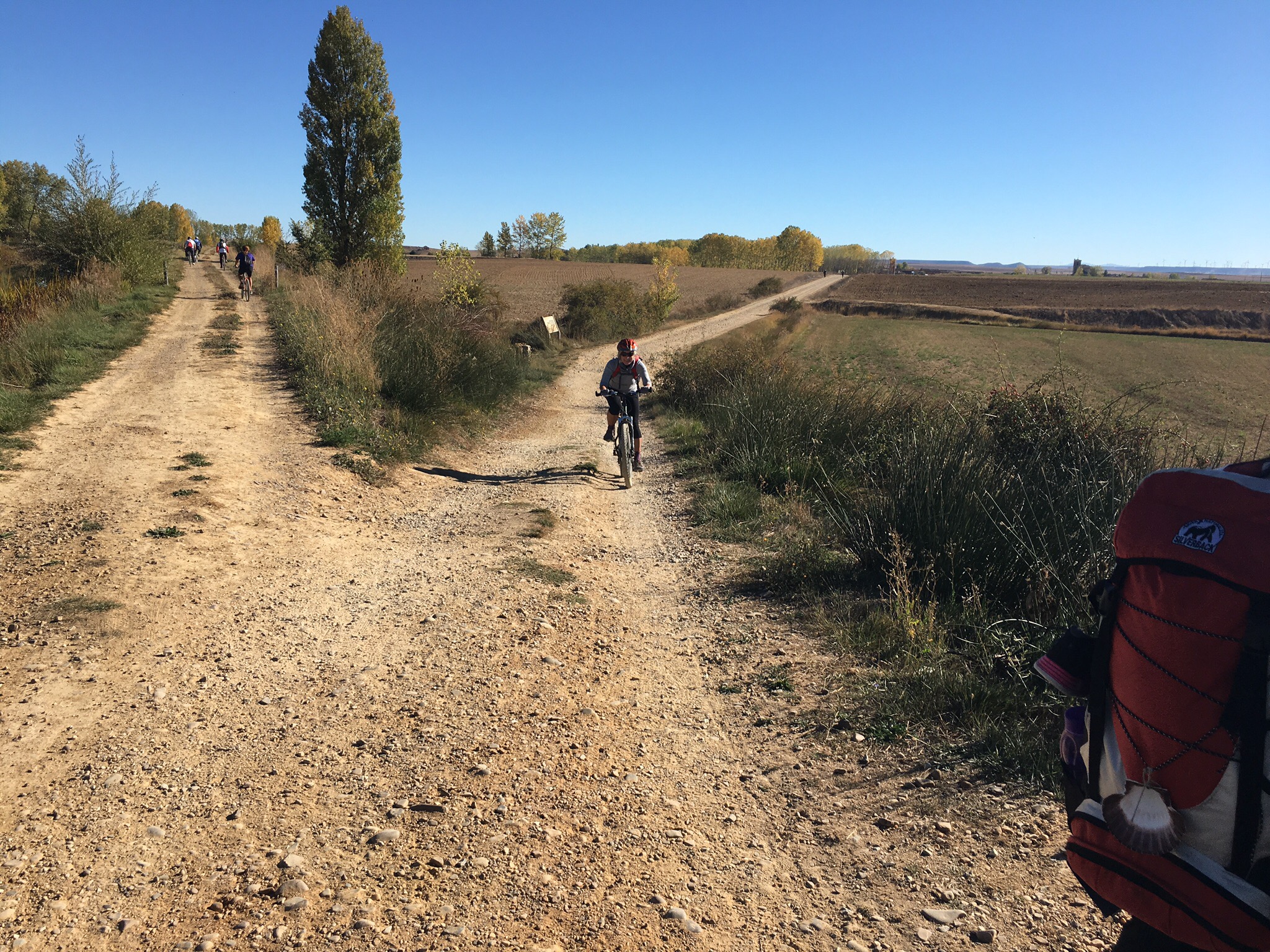 We arose the next morning, loaded up the panniers with full bags worth of stuff (roughly 30-40 pounds) shipping the other bag down the road, and then crossed the street to the bar/café (whose name I’ve forgotten and for the life of me can’t find anywhere on the net) for a nice filling 4 euro breakfast. And then we took off, our first full day of riding the Camino, our destination that day Castrojeriz.