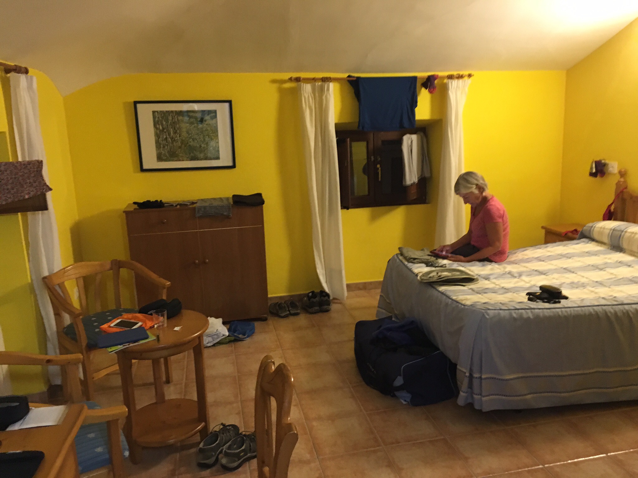 We checked into Albergue/Hostal Viatoris, a large combo hotel and dormitory and were shown to our room, two bunk beds all to ourselves and bathroom for 25 euros. We immediately went in search of the bike shop, which turned out to be a establishment for the repair and sale of bikes, motorcycles, lawnmowers and all kinds of machine driven mechanical devices. I secured two new tubes and a good pump for prices far lower than I would have paid in the States, an interesting development we’ve encountered throughout this trek.