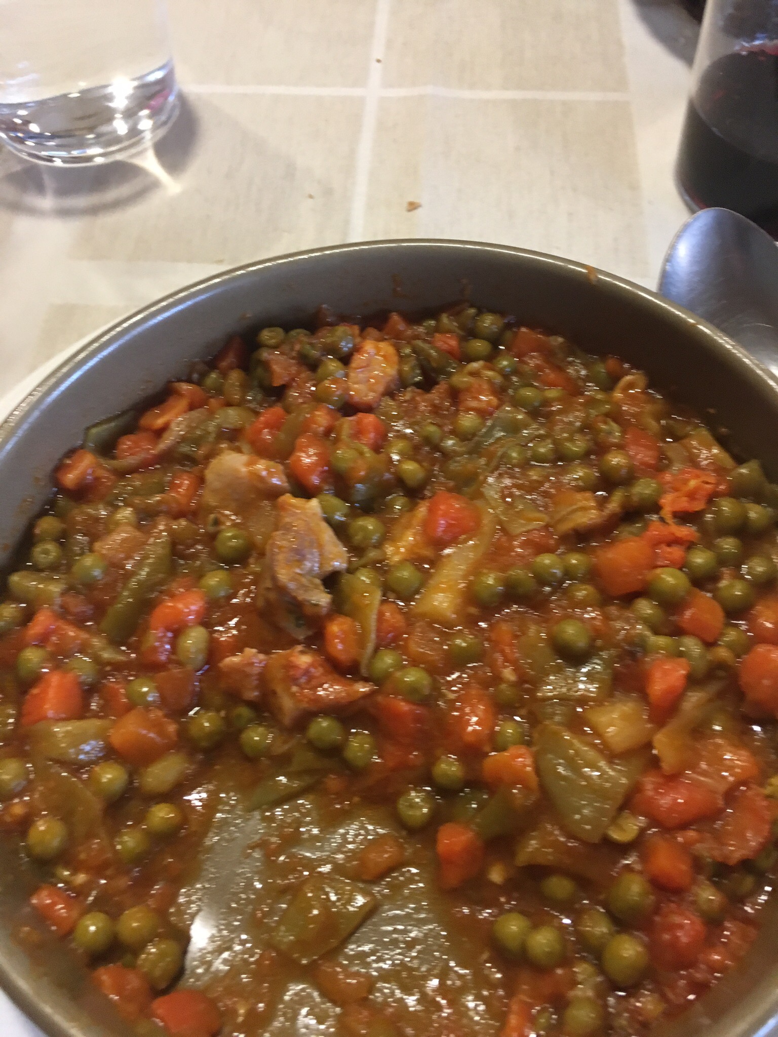 As we sat down we noticed a solo woman sitting at the next table and asked her to join us. She was an Austrian, traveling the Camino for a week away from her family and our conversation that night ranged far and wide, from family to politics to life in general. On the food side, I had a vegetable stew first course that was incredibly good and Joanna’s fresh grilled Hake made all of her previous visits to this fish preparation seem stale in comparison.