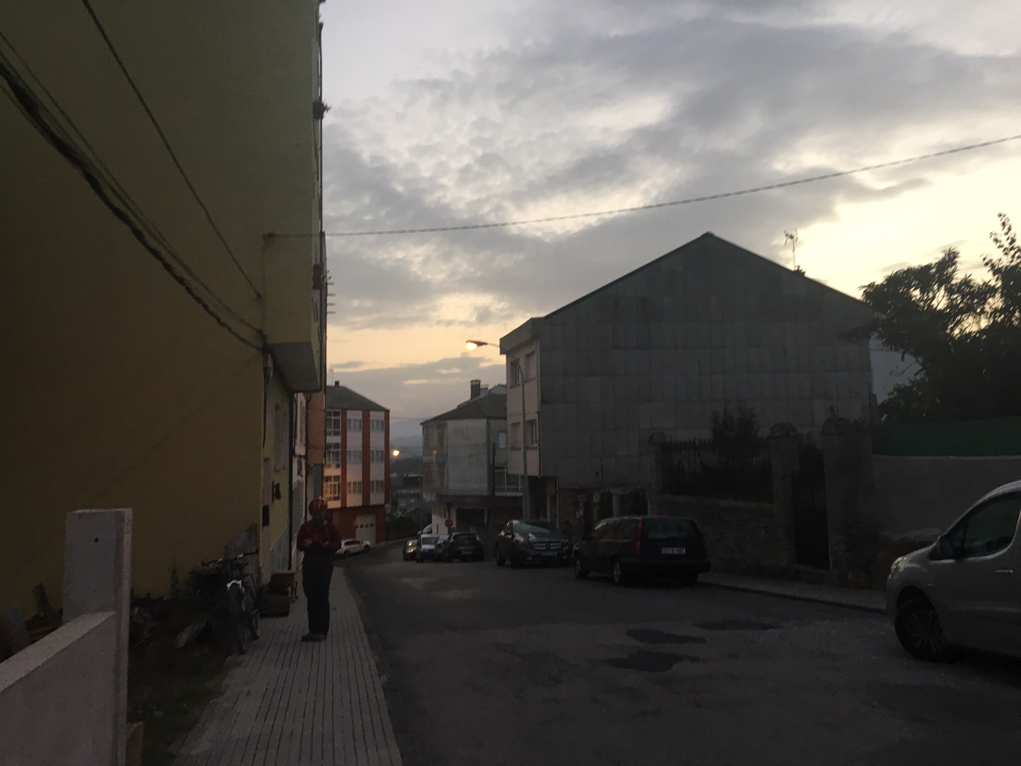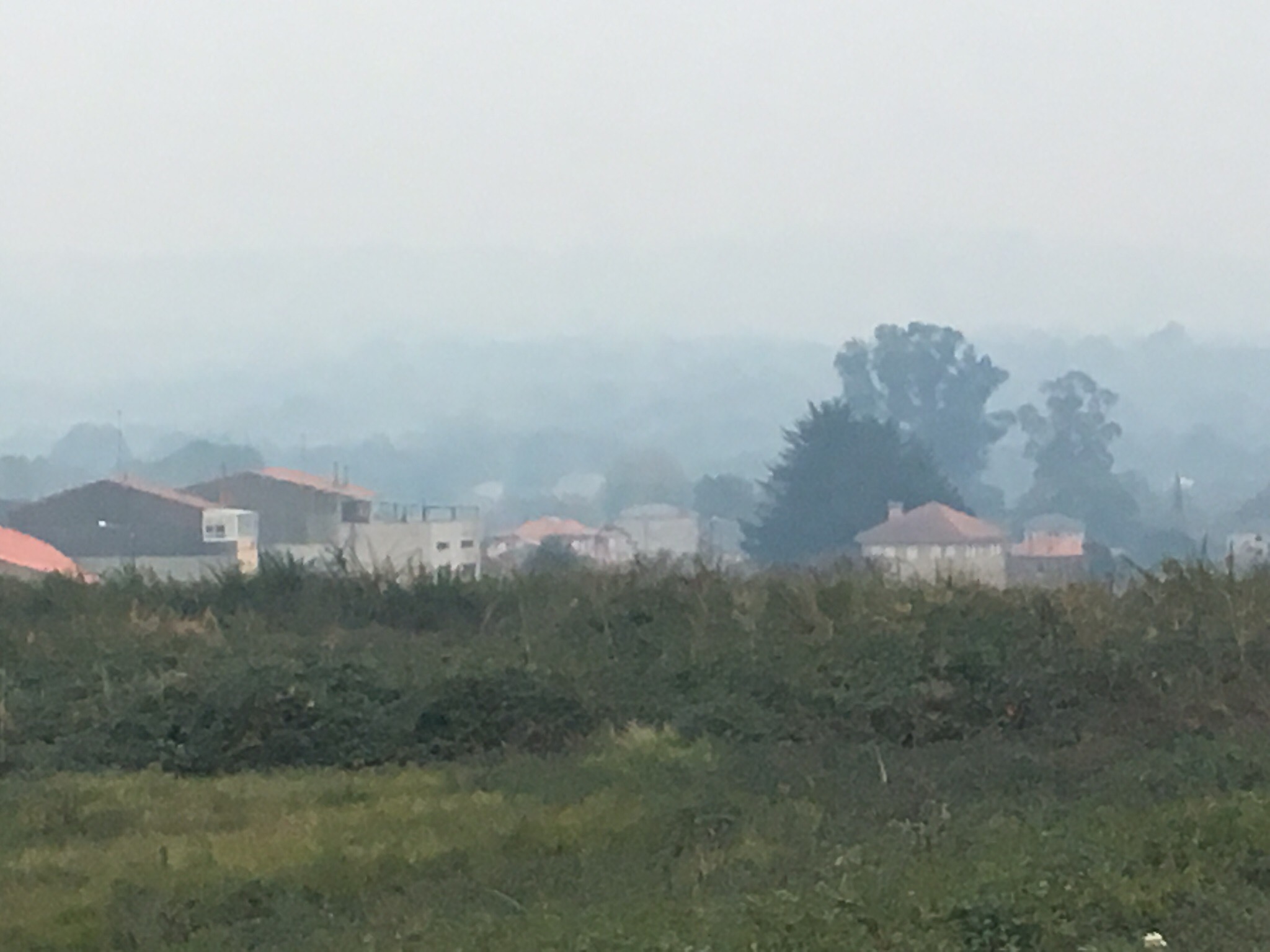 In keeping with the fires that had raged recently in Napa, California and the brush fires we’d witnessed a day earlier climbing O Cebreiro, huge fires had broken out in Portugal and Galicia, the area of Spain we were riding through. It had gotten smokier as the day progressed and by the time we walked to the main drag of town and up the long street in search of a meal the skies had turned an ominous gray.